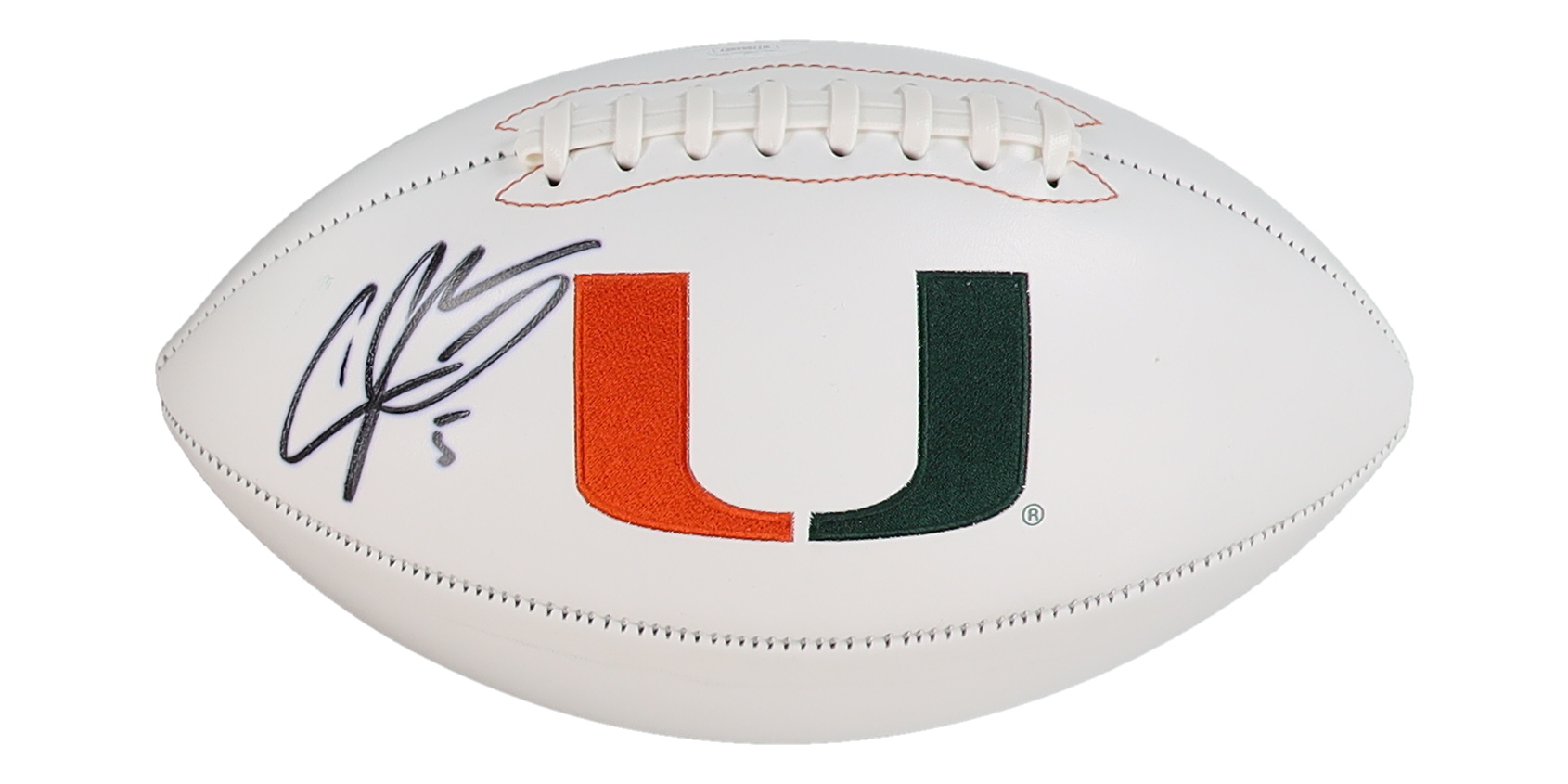 Miami Hurricanes logo football has been hand-signed by Andre Johnson.