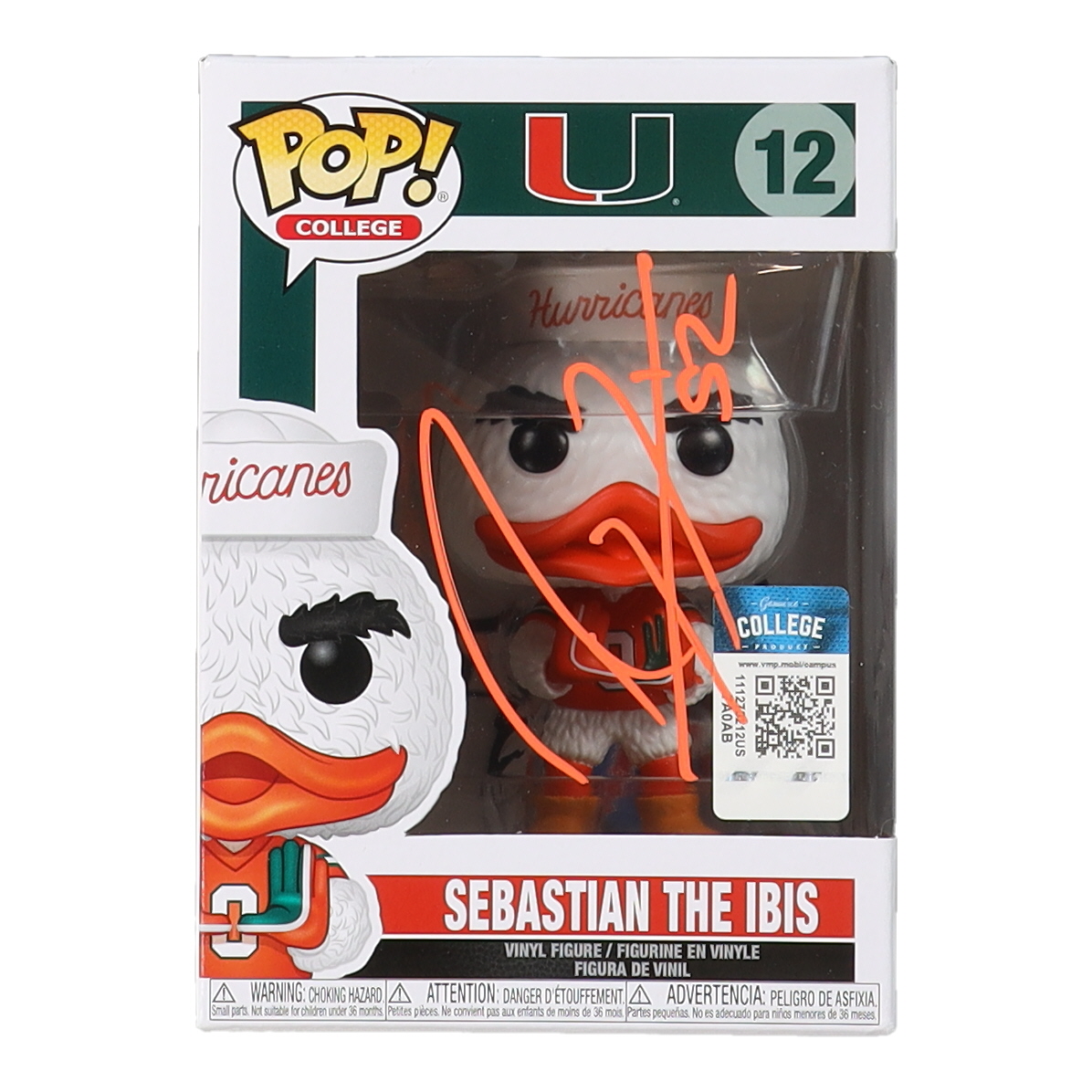 Ray Lewis Signed Miami Hurricanes #12 Sebastian the Ibis Funko Pop! Vinyl Figure (Beckett)
