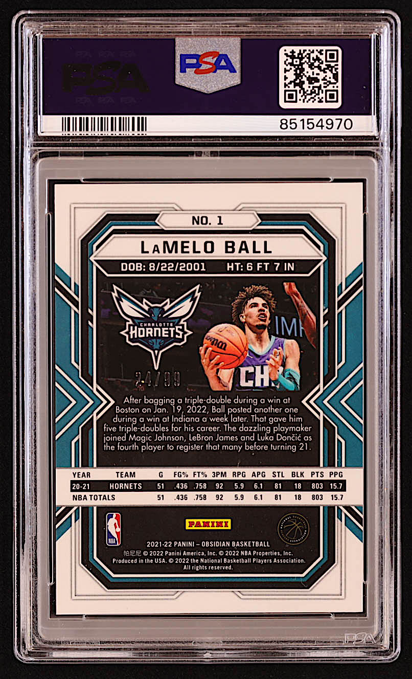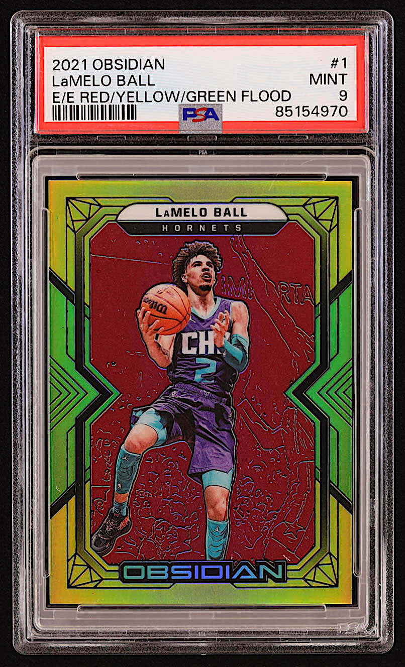 LaMelo Ball 2021-22 Panini Obsidian Electric Etch Red Yellow Green Flood #1 #24/99 (PSA 9)