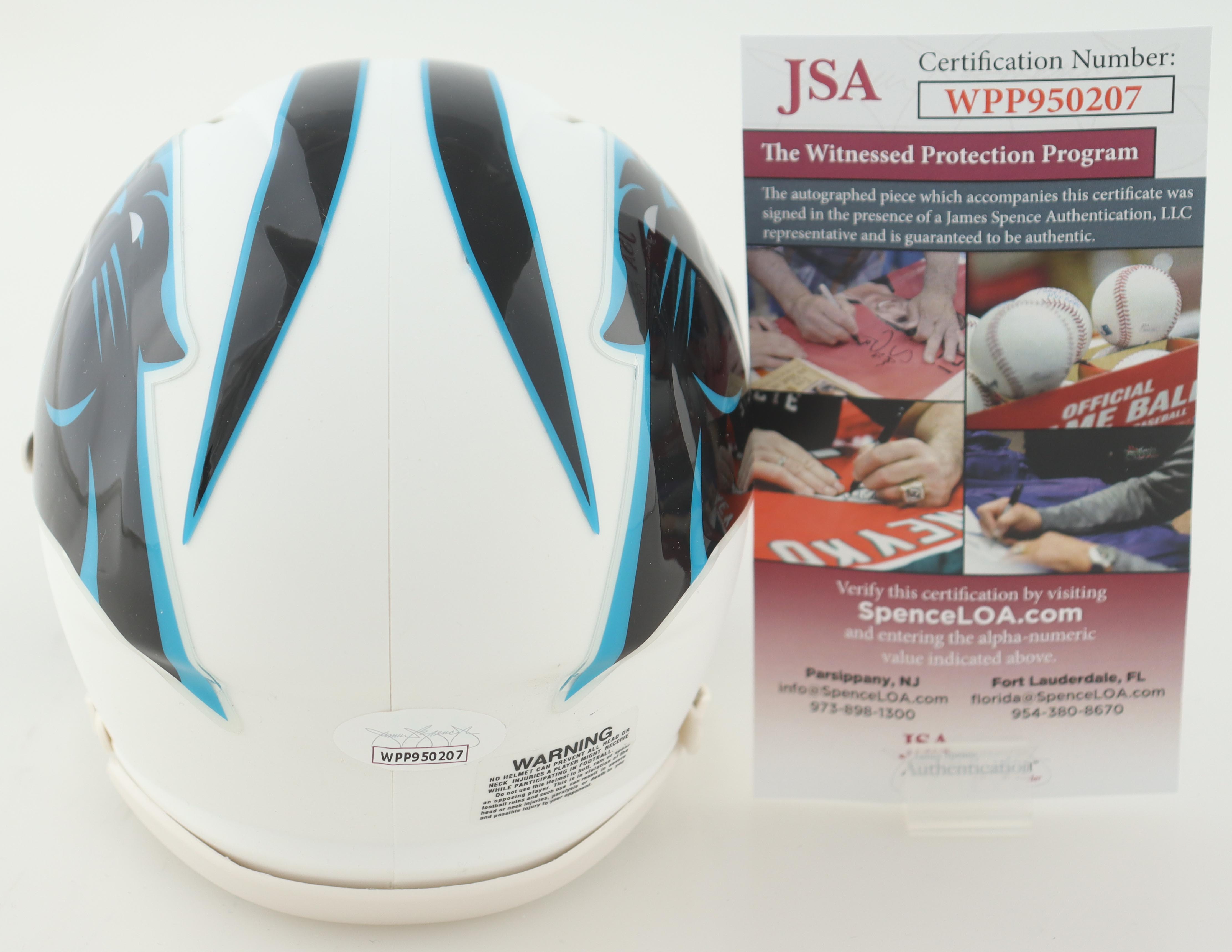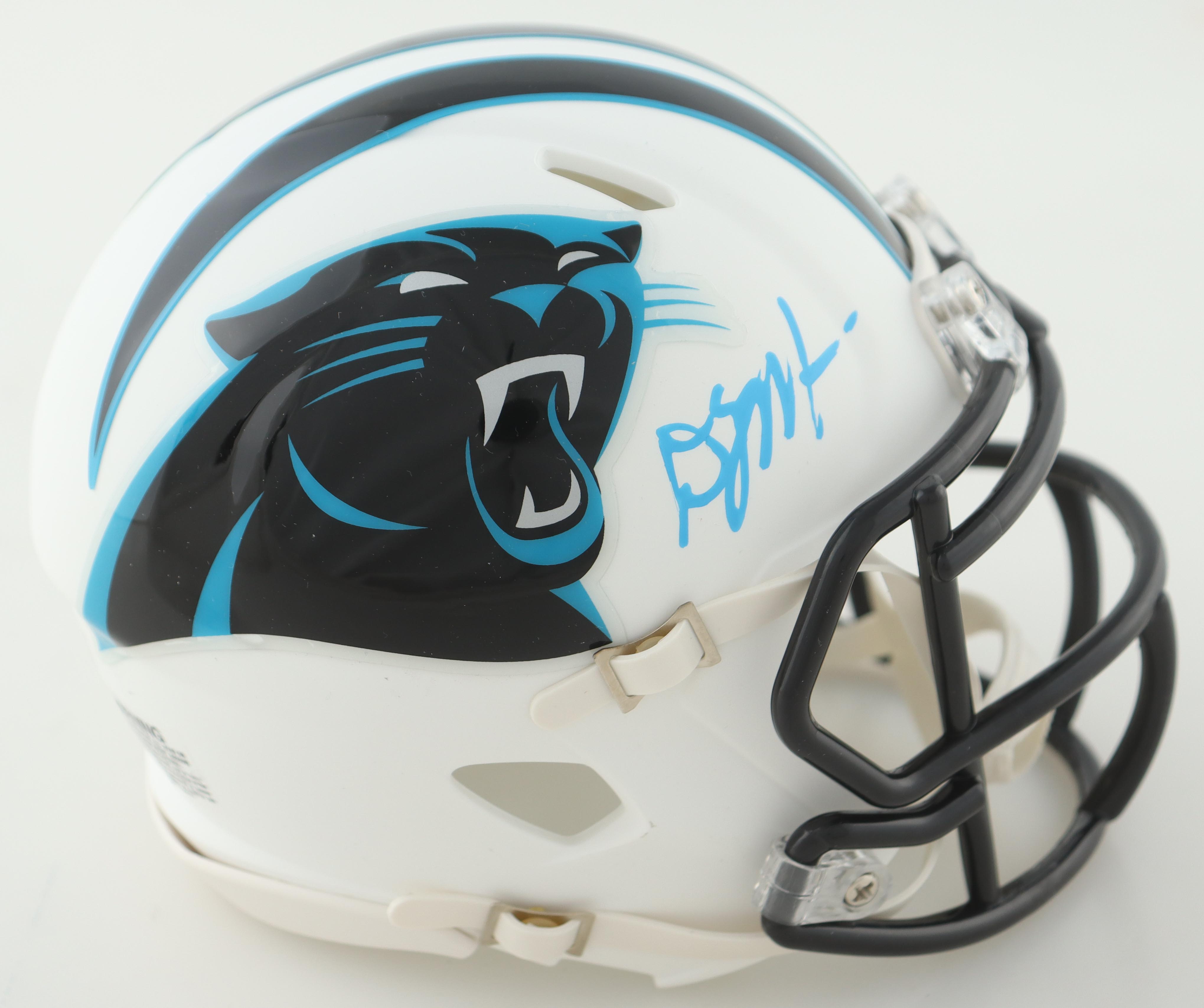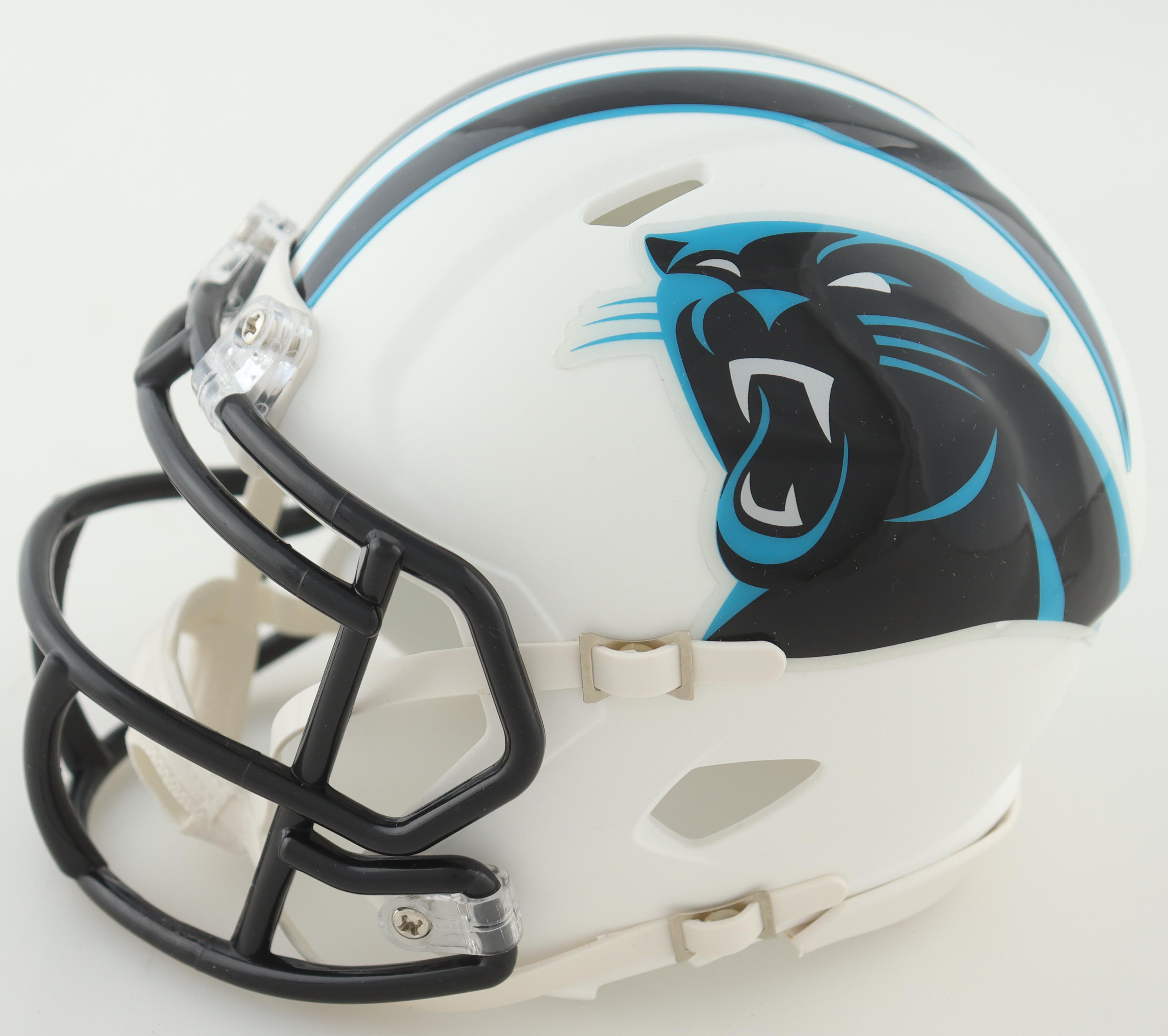 Riddell Carolina Panthers lunar eclipse alternate speed mini helmet. Hand-signed by DJ Moore.