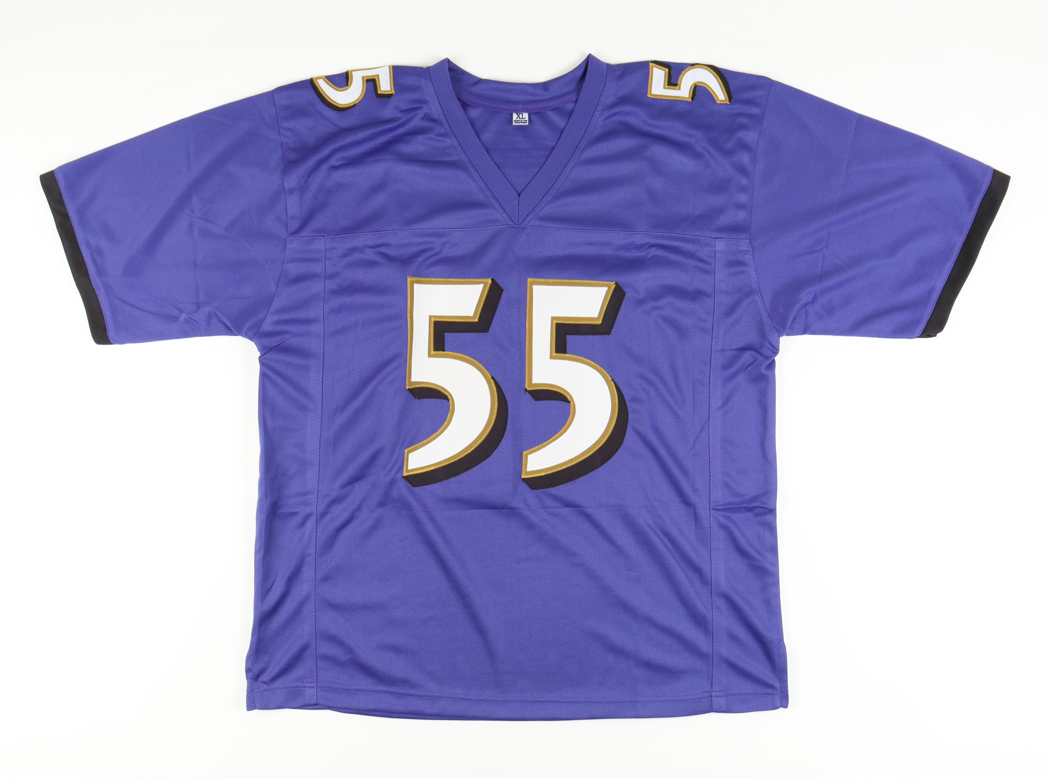 Custom jersey. Everything sewn on, size XL. Hand-signed by Terrell Suggs.
