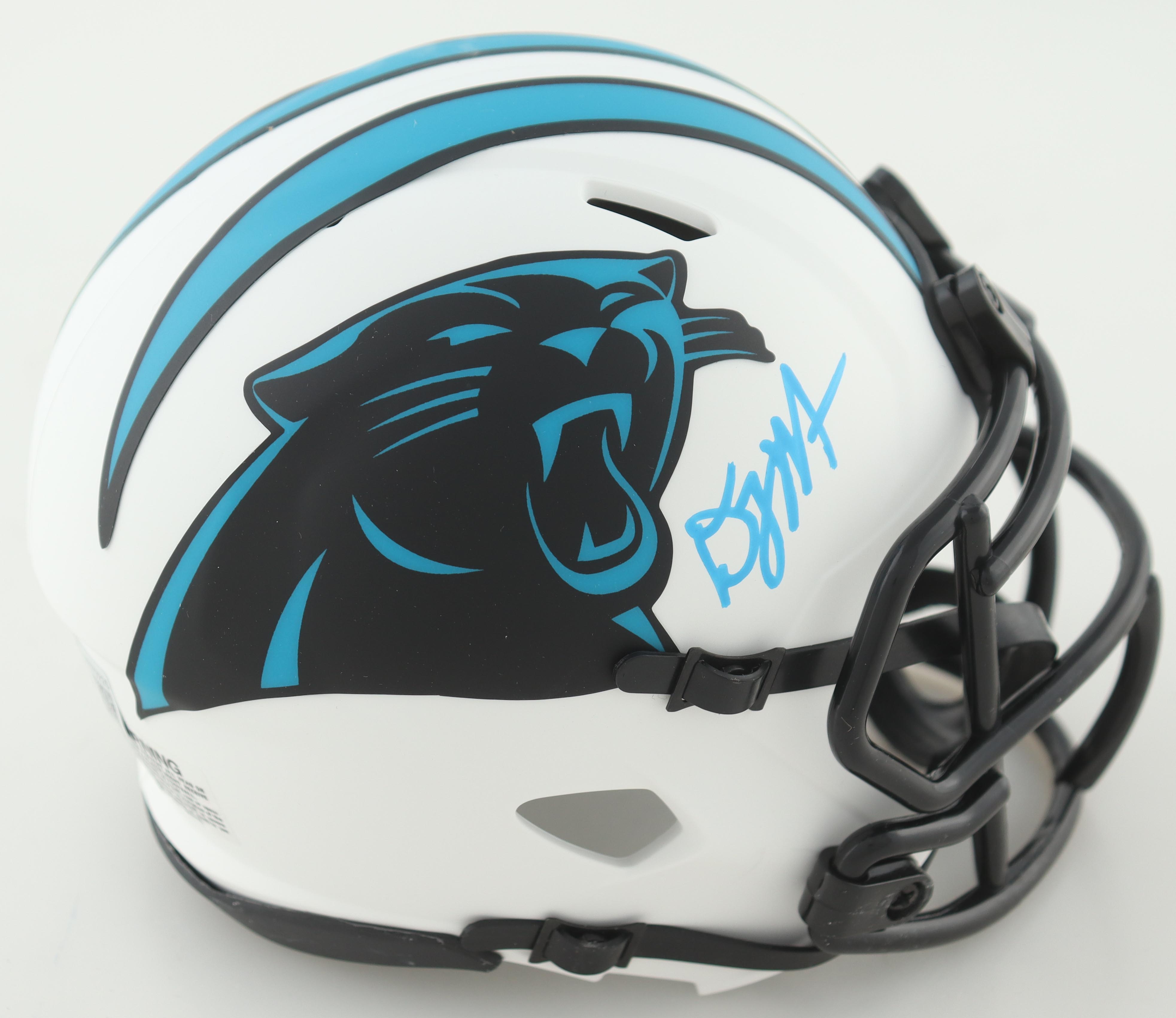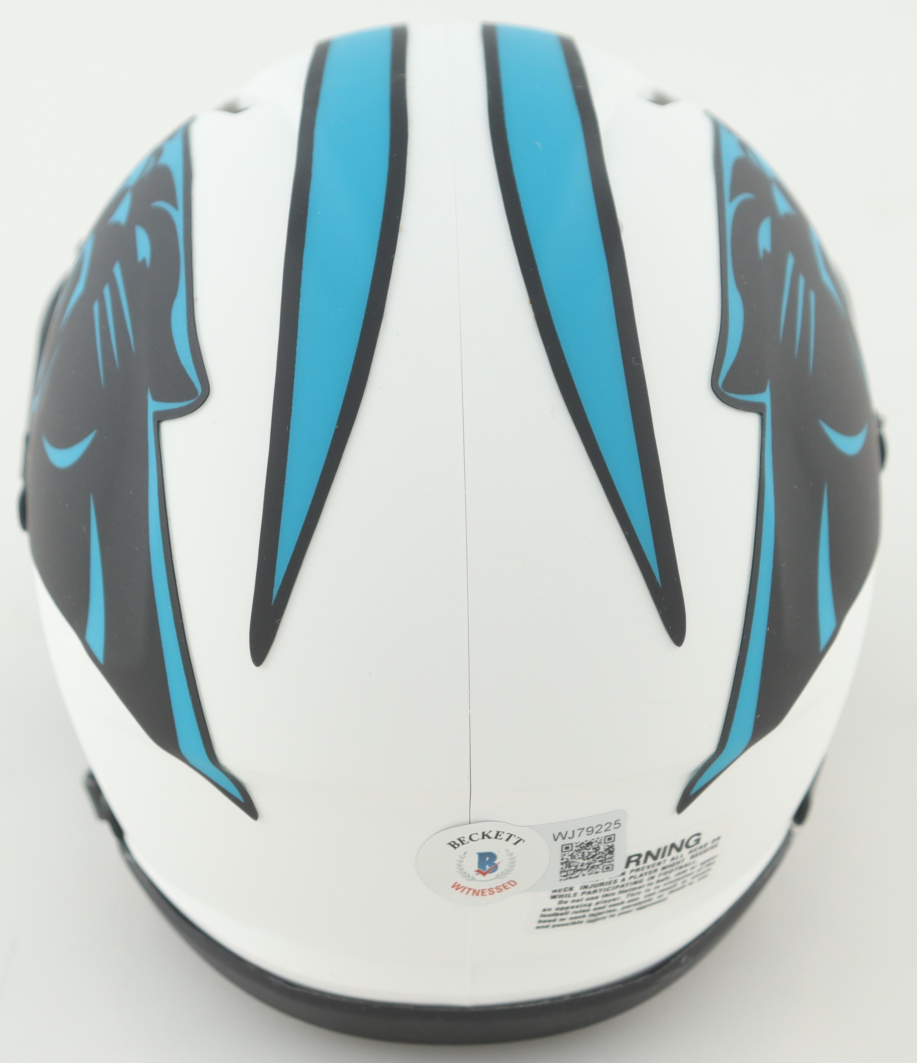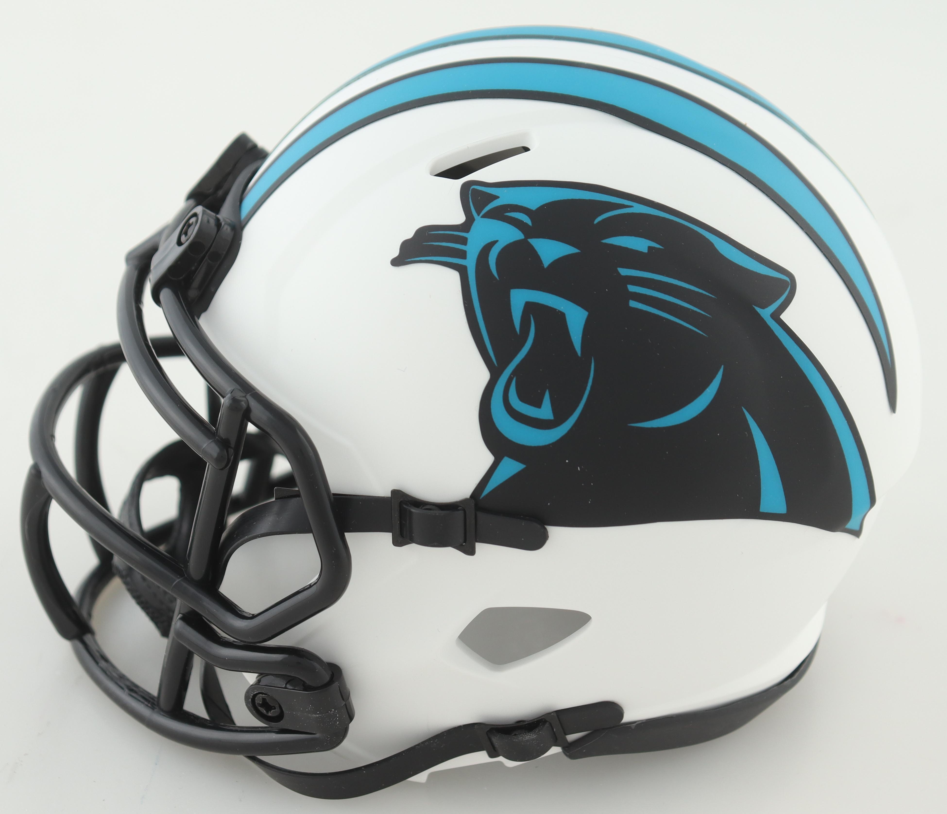 Riddell Carolina Panthers lunar eclipse alternate speed mini helmet. Hand-signed by DJ Moore.