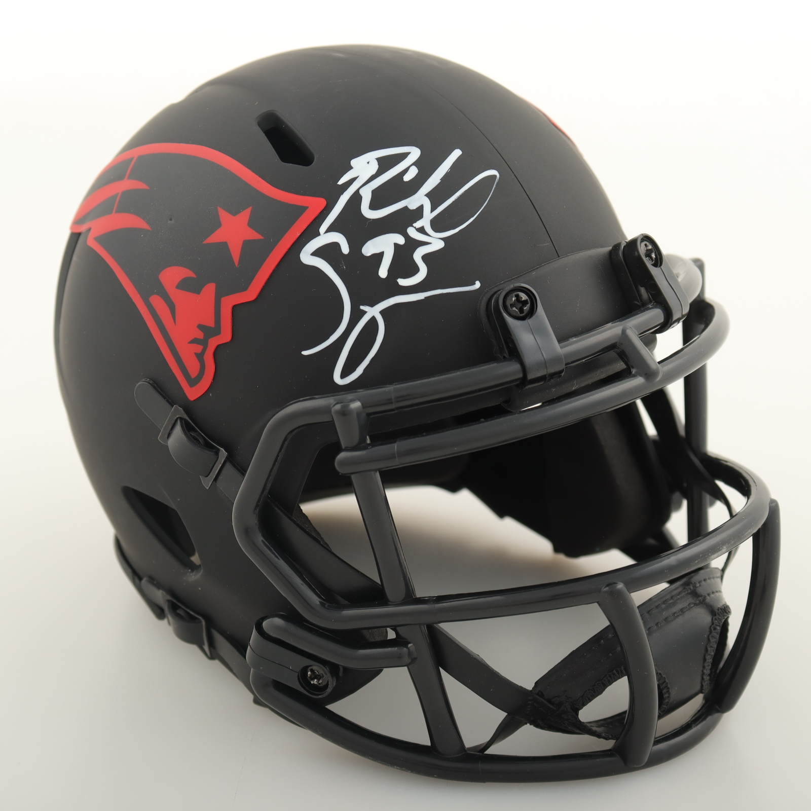 Riddell New England Patriots eclipse alternate speed mini helmet. Hand-signed by Richard Seymour (HOF).