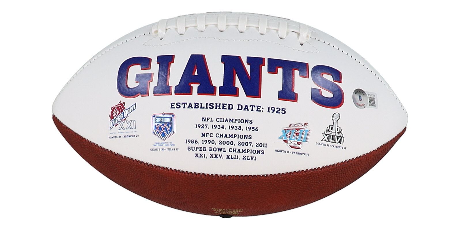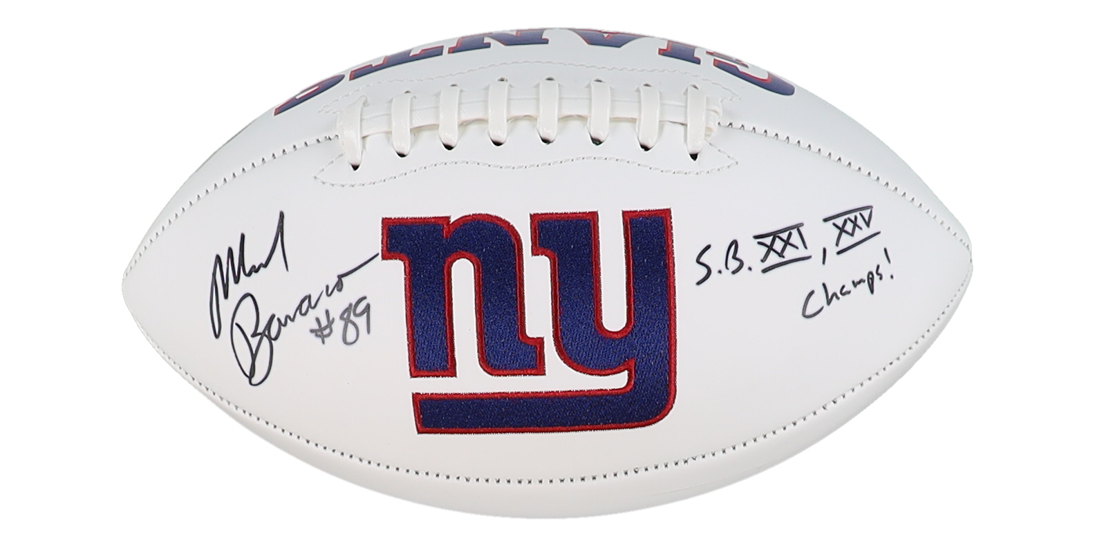 New York Giants logo Football. Hand-signed and inscribed by Mark Bavaro.