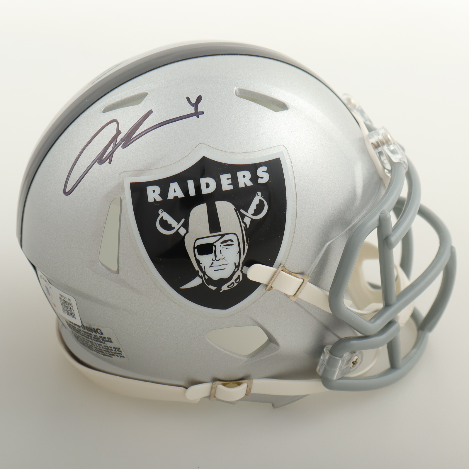 Riddell Las Vegas Raiders Speed Mini Helmet. Hand-signed by Aidan O'Connell.