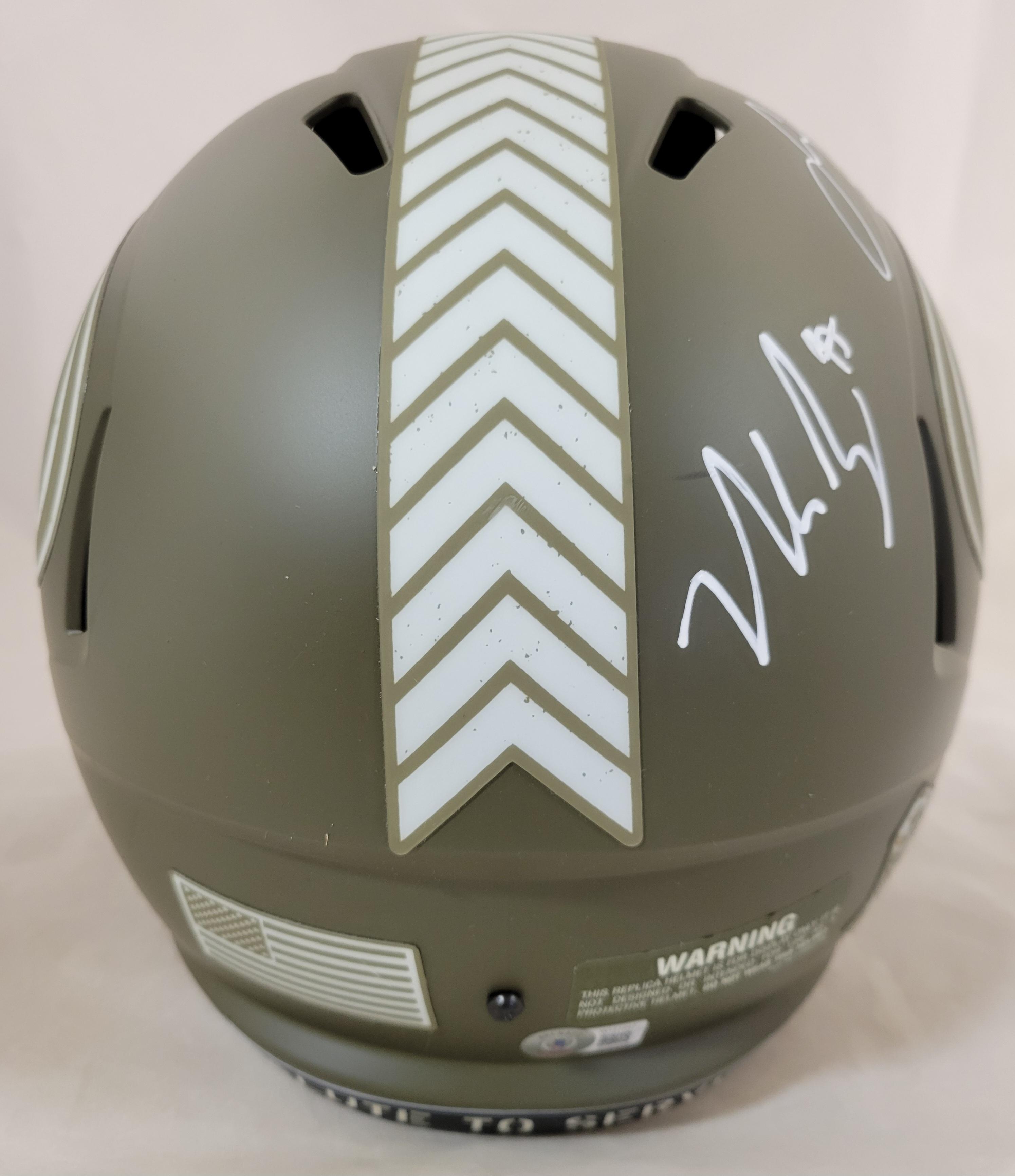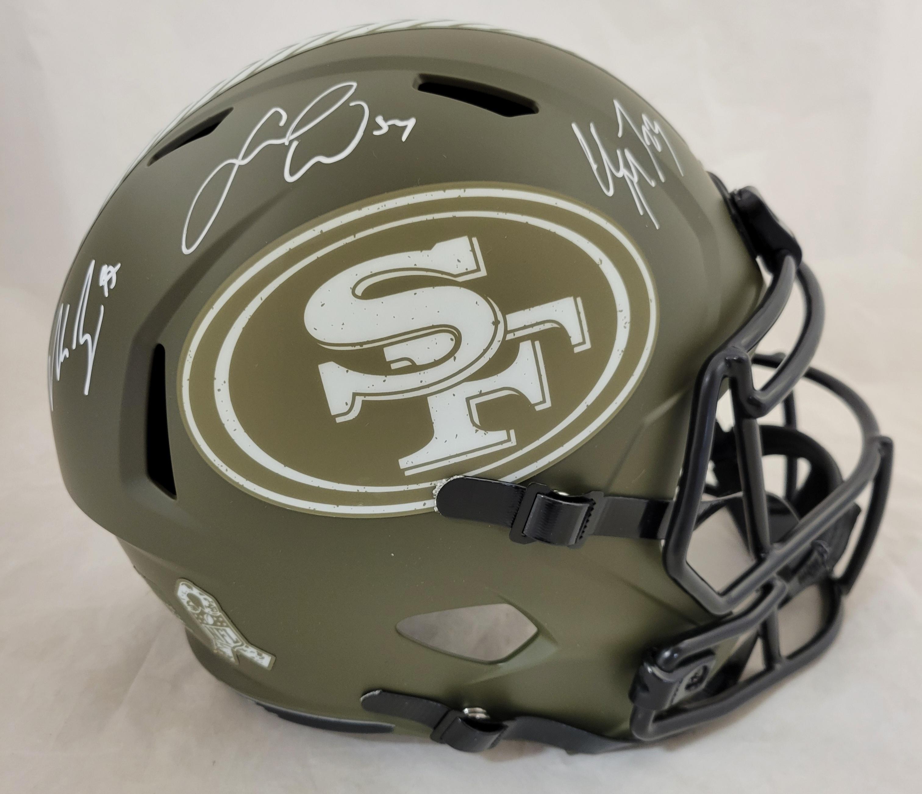 Christian McCaffrey, Nick Bosa, & Fred Warner Signed 49ers Full-Size Salute to Service Alternate Speed Helmet (Beckett)