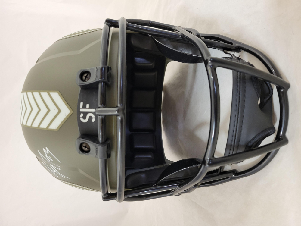 Riddell San Francisco 49ers Full-Size Salute to Service Alternate Speed Helmet. Hand-signed by Christian McCaffrey, Nick Bosa and Fred Warner.