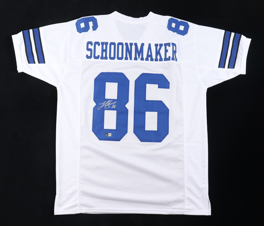 Custom jersey. Everything sewn on, size XL. Hand-signed by Luke Schoonmaker.