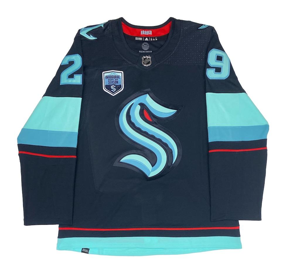 Adidas jersey. Everything sewn on, size 54. Hand-signed by Vince Dunn (Seattle Kraken).