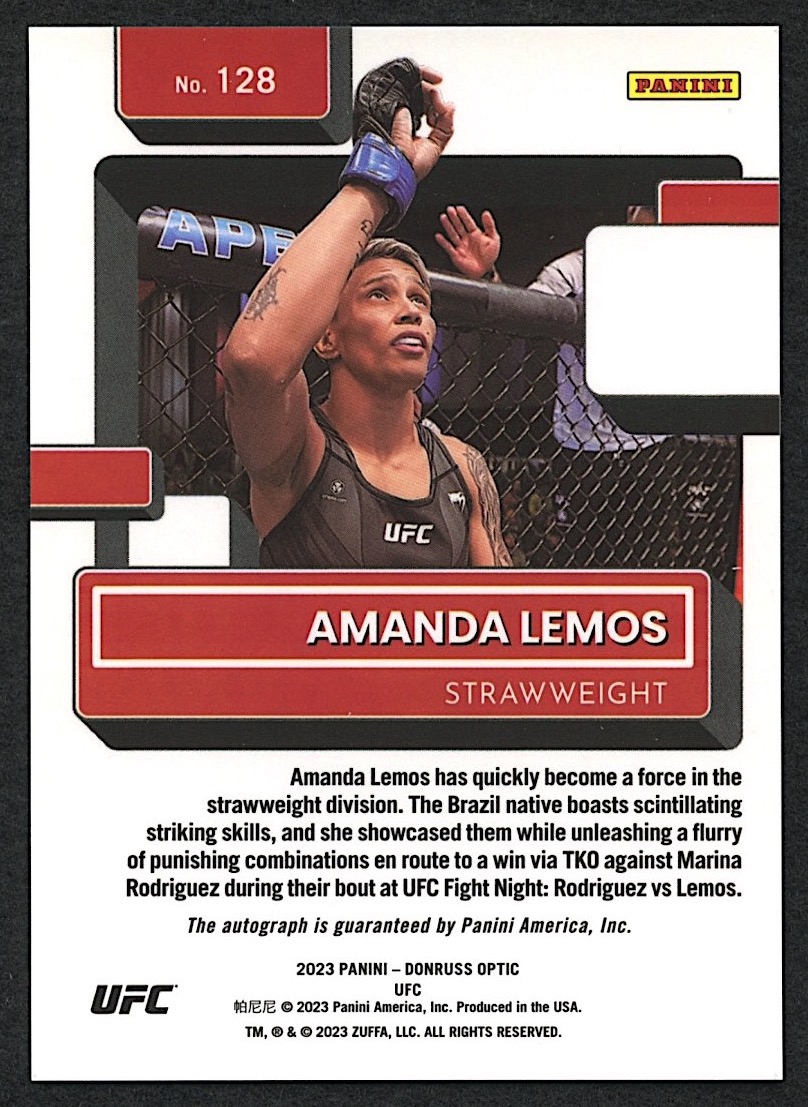 Amanda Lemos 2023 Donruss Optic UFC Rated Rookies Signatures #128 RC Autograph