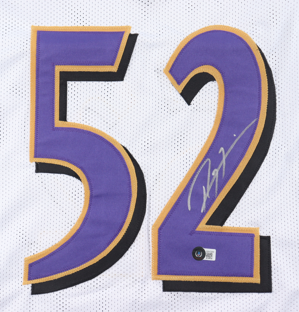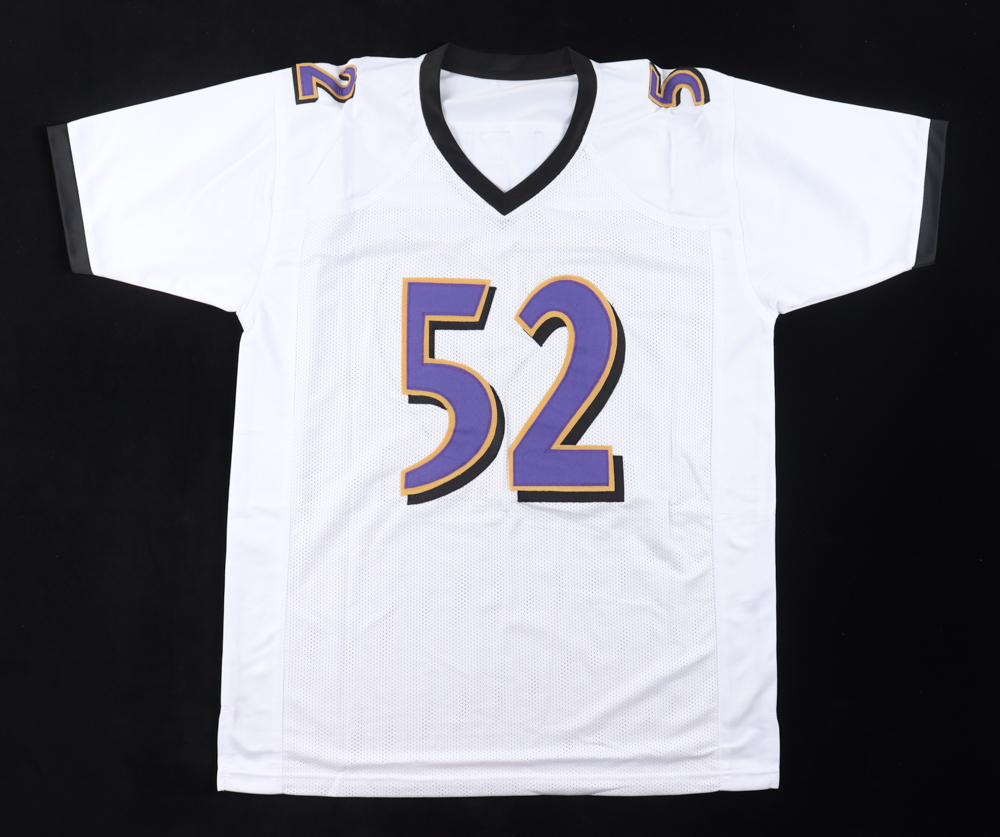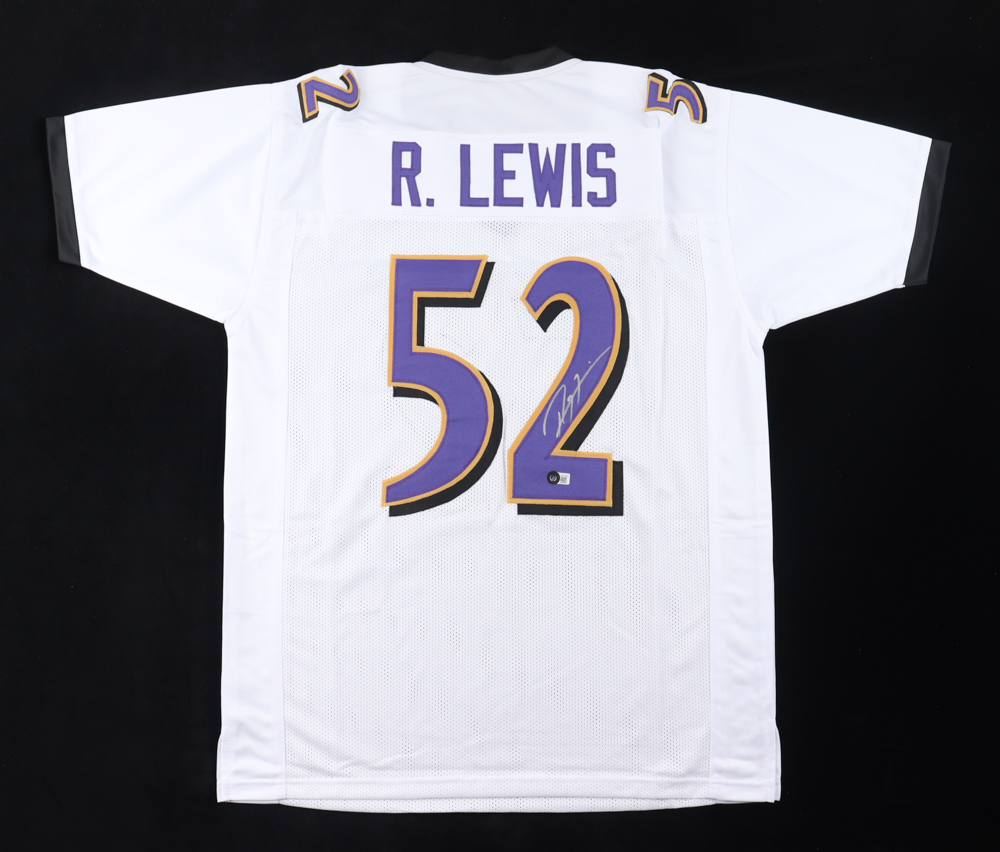 Custom jersey. Everything is sewn on, size XL. Hand-signed by Ray Lewis (HOF).