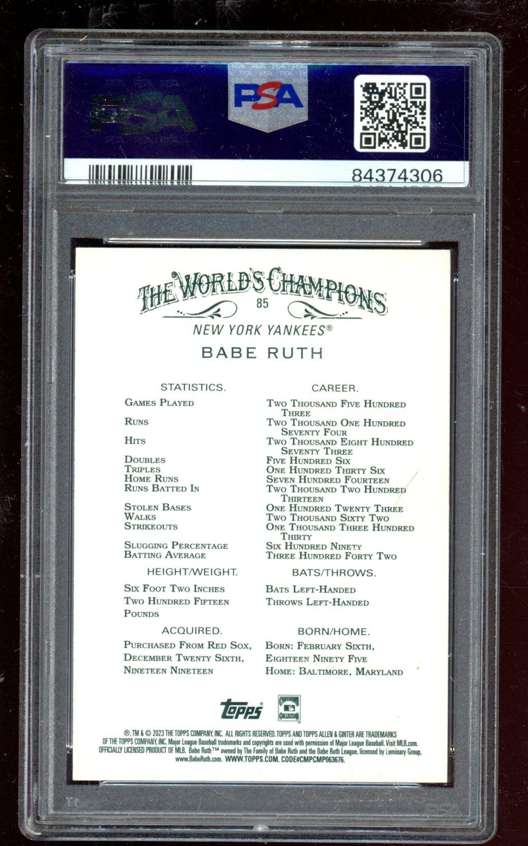 Babe Ruth 2023 Topps Allen and Ginter Silver Portrait #85 (PSA 9)
