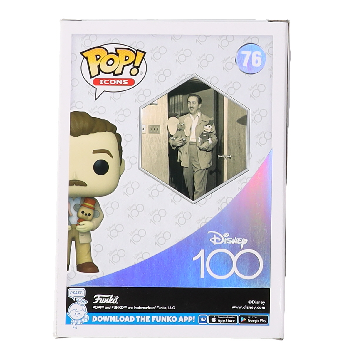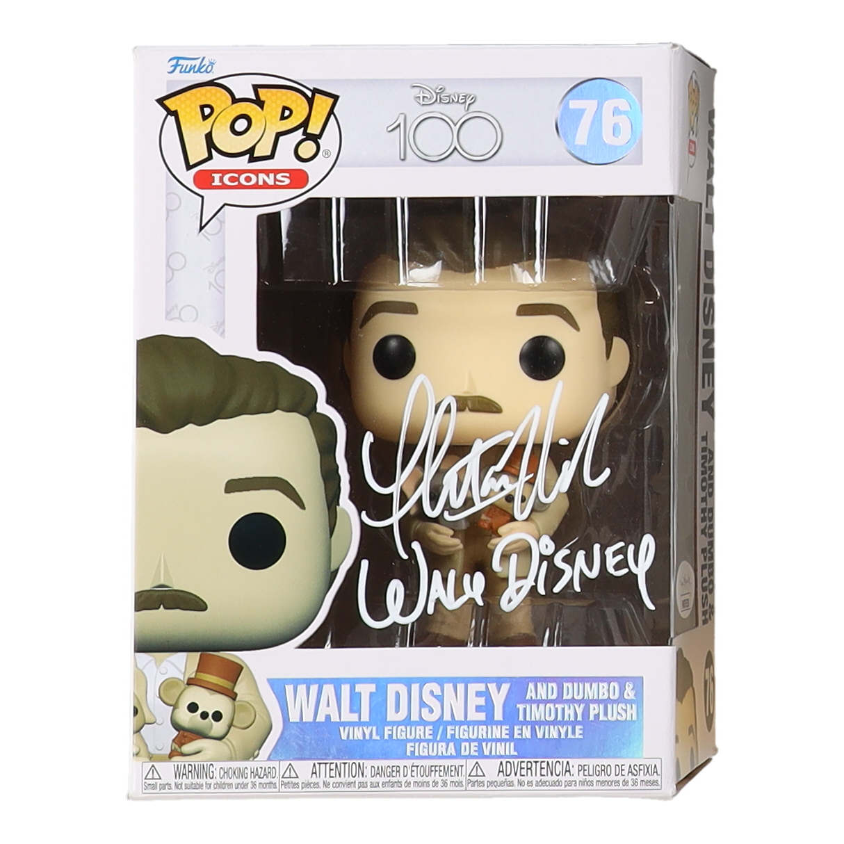 Funko Pop! figure measures approximately 4" tall and has been hand-signed and inscribed on the packaging by Thomas Ian Nicholas (Young Walt in "Walt Before Disney"). Please note, signature has smudged.
