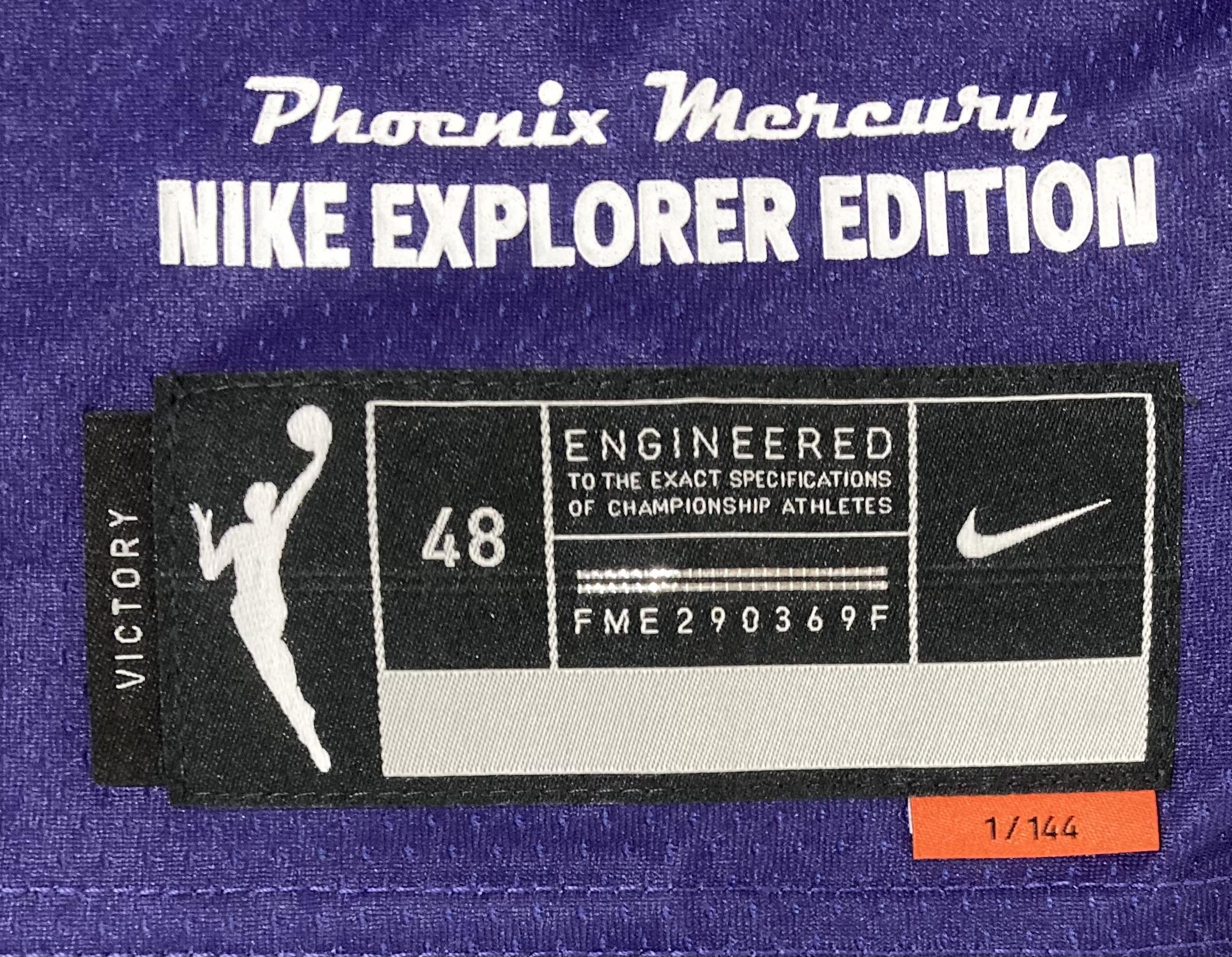 Nike jersey. Everything is printed on, size 48. Hand-signed by Diana Taurasi (Phoenix Mercury).