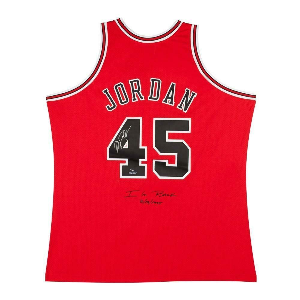 Mitchell & Ness authentic jersey. Everything is sewn on, size 48. Hand-signed by Michael Jordan (Chicago Bulls, HOF).