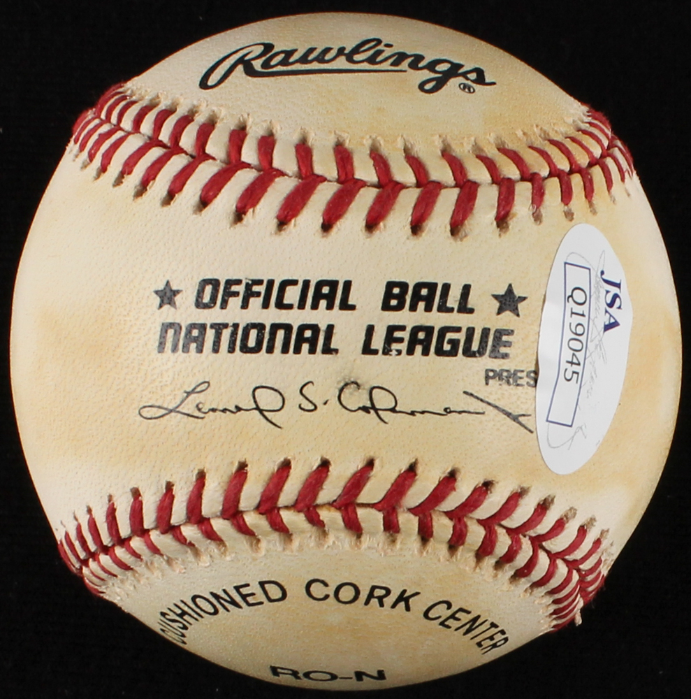 Rawlings Official National League Baseball has been hand-signed in black ink pen by Ron Santo (D. 2010, Cubs HOF). Please note the autograph is imperfect, see photos regarding the condition of the autograph and the baseball.