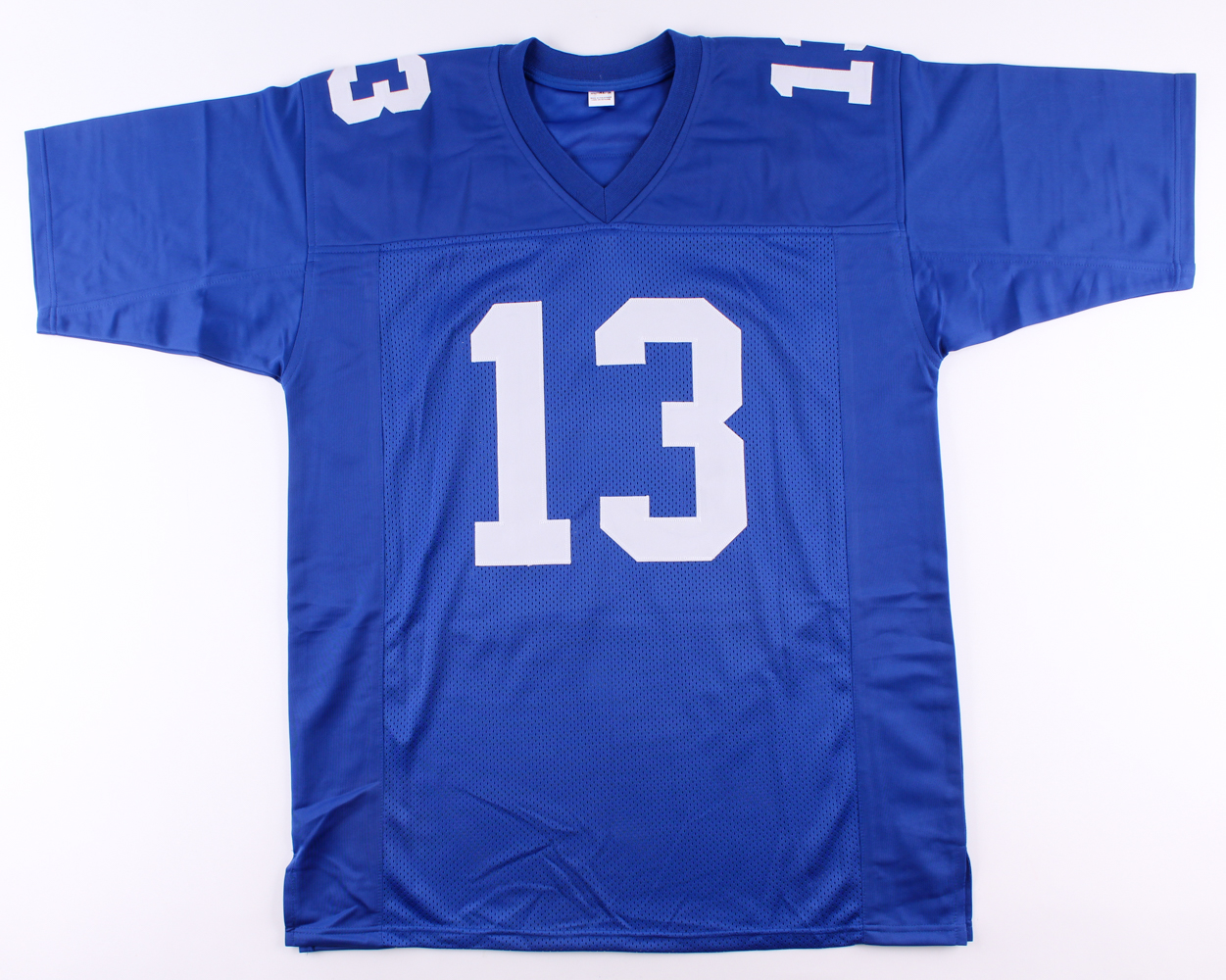 Custom on-field style jersey. Everything is sewn on, size XL. Hand-signed by Odell Beckham Jr.