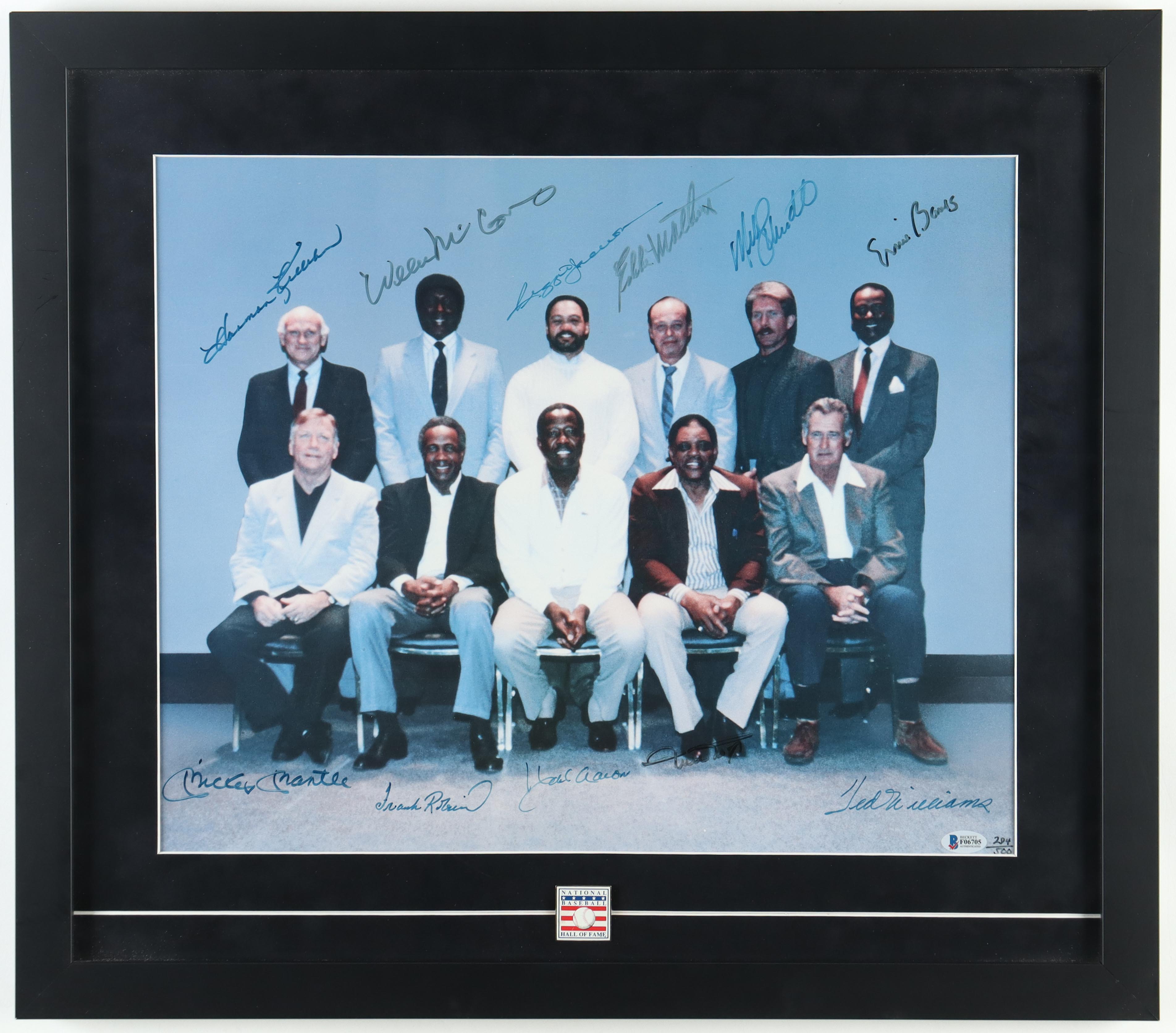 500 Home Run Club LE Custom Framed Photo Signed By (11) with Mickey Mantle, Ernie Banks, Hank Aaron, Willie Mays, Ted Williams, Frank Robinson (Beckett)