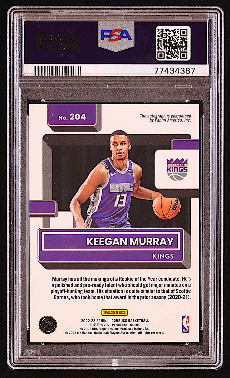 Keegan Murray 2022-23 Donruss Rated Rookies Signatures Holo Laser #204 RC #27/99 (PSA 8)