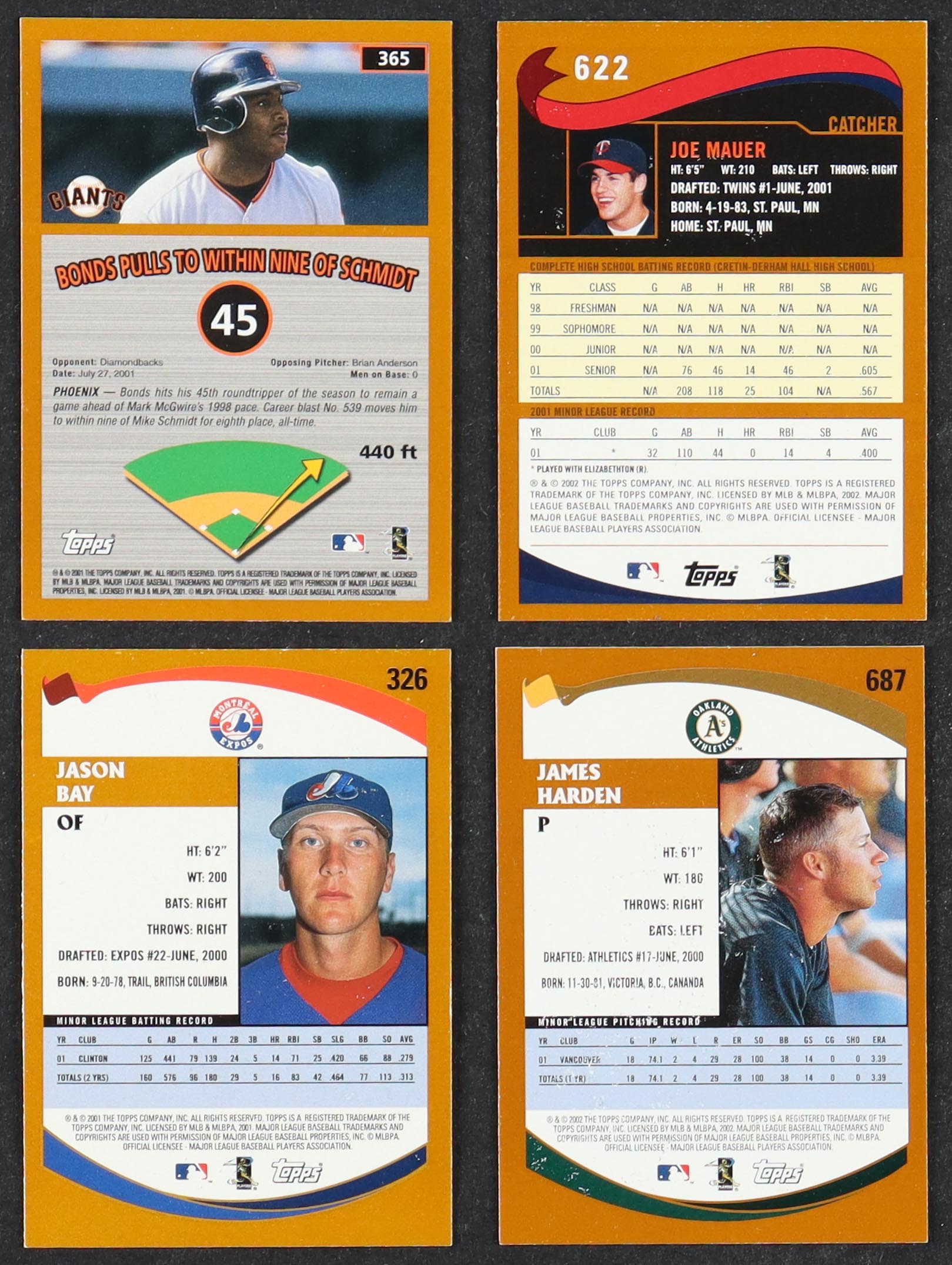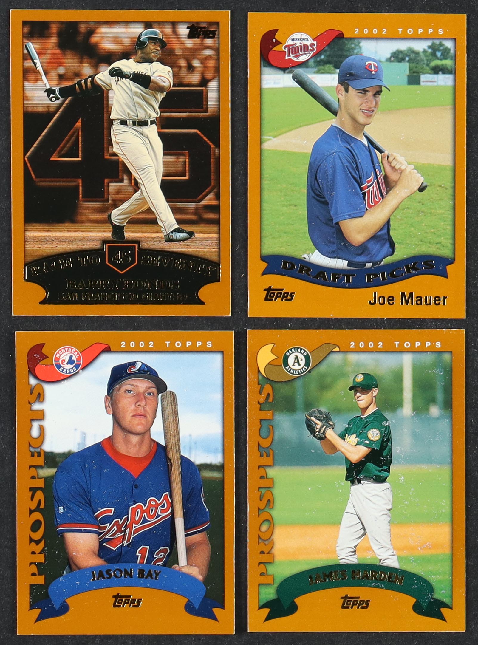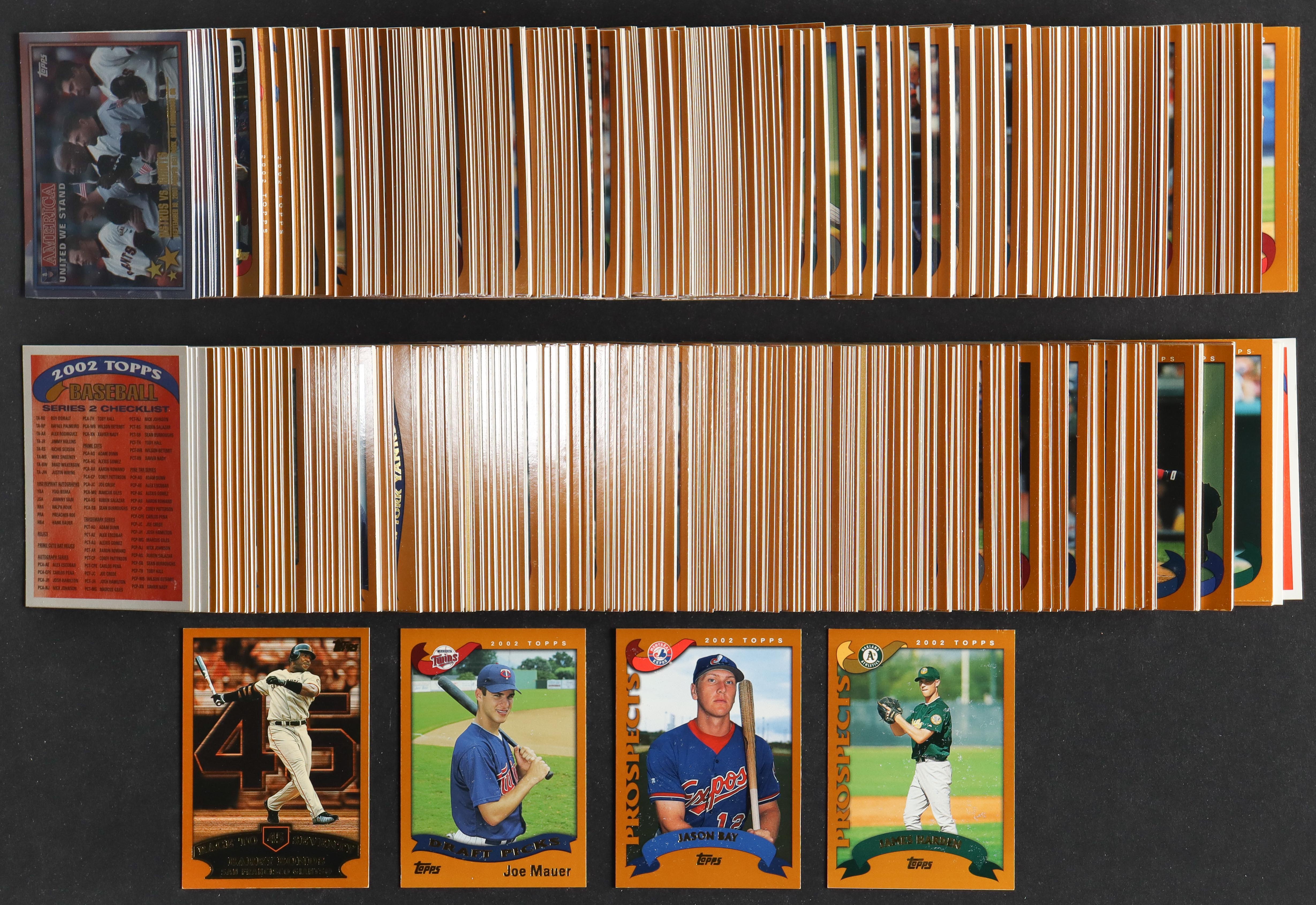 2002 Topps Baseball Complete Set of (718) Cards With Barry Bonds #365, Joe Mauer #622, Jason Bey #326, James Harden #687