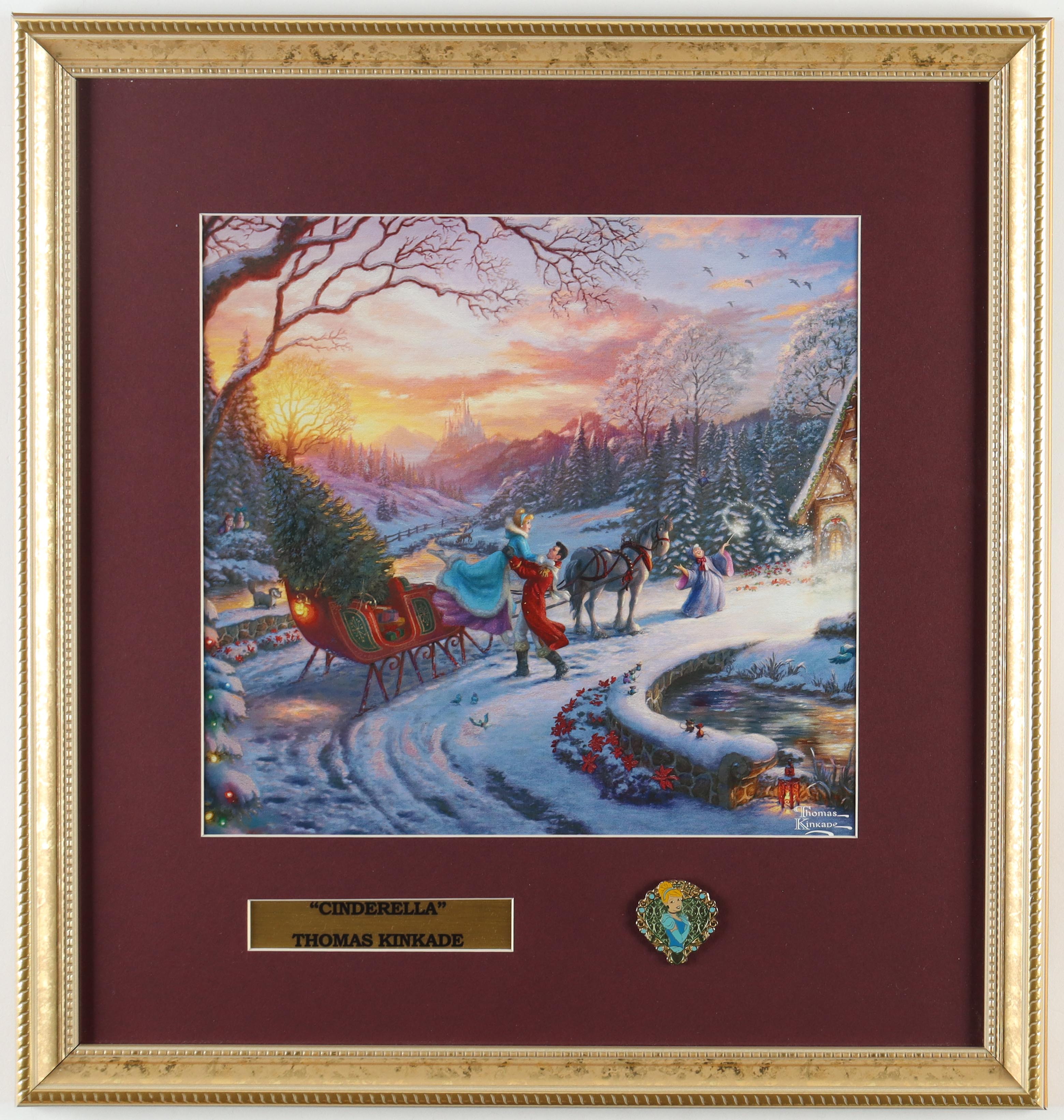 Thomas Kinkade "Cinderella" Custom Framed Print Display with Cinderella Gold Pin