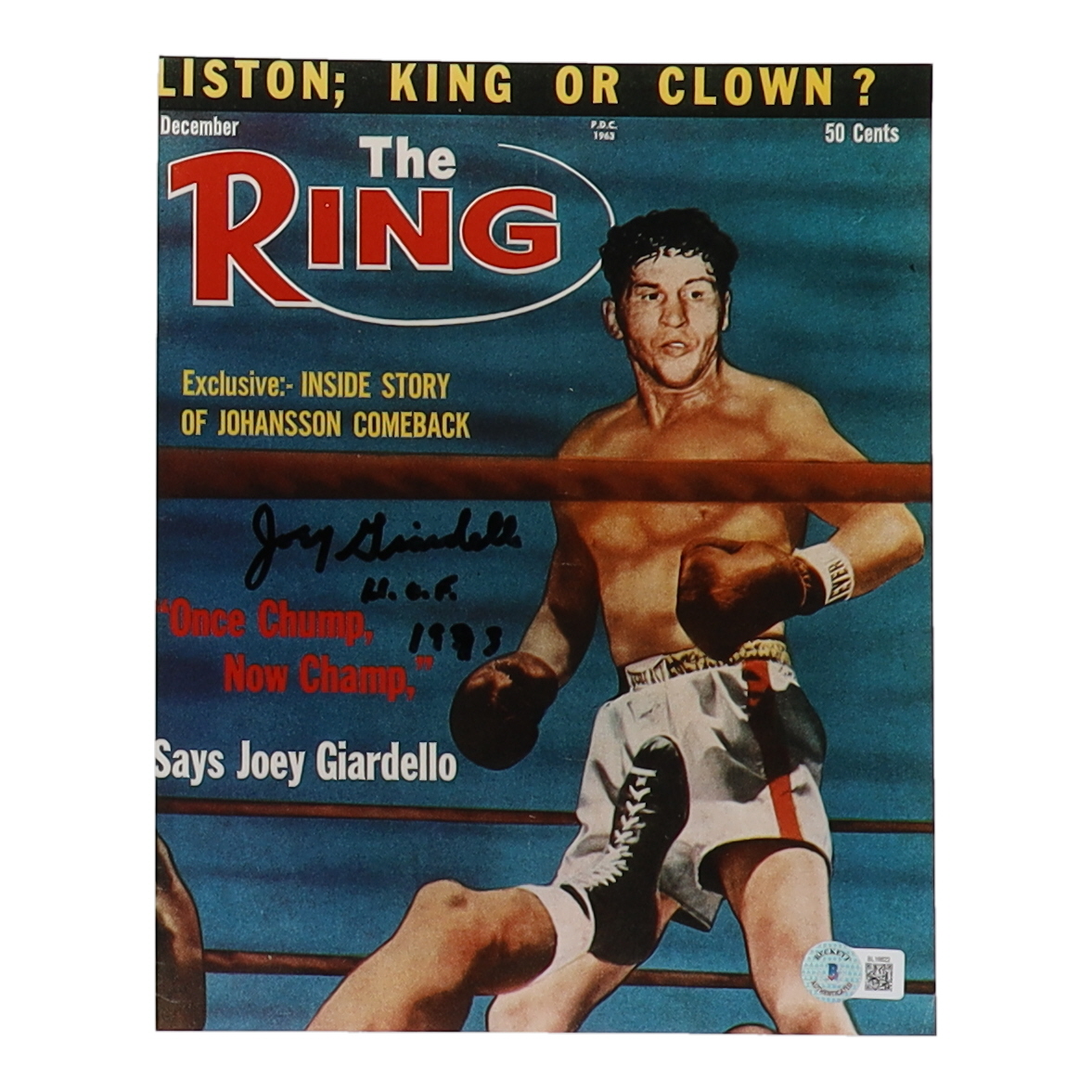 Photo measures 8" x 10" in size. Hand-signed and inscribed by Joey Giardello (D. 2008, HOF).