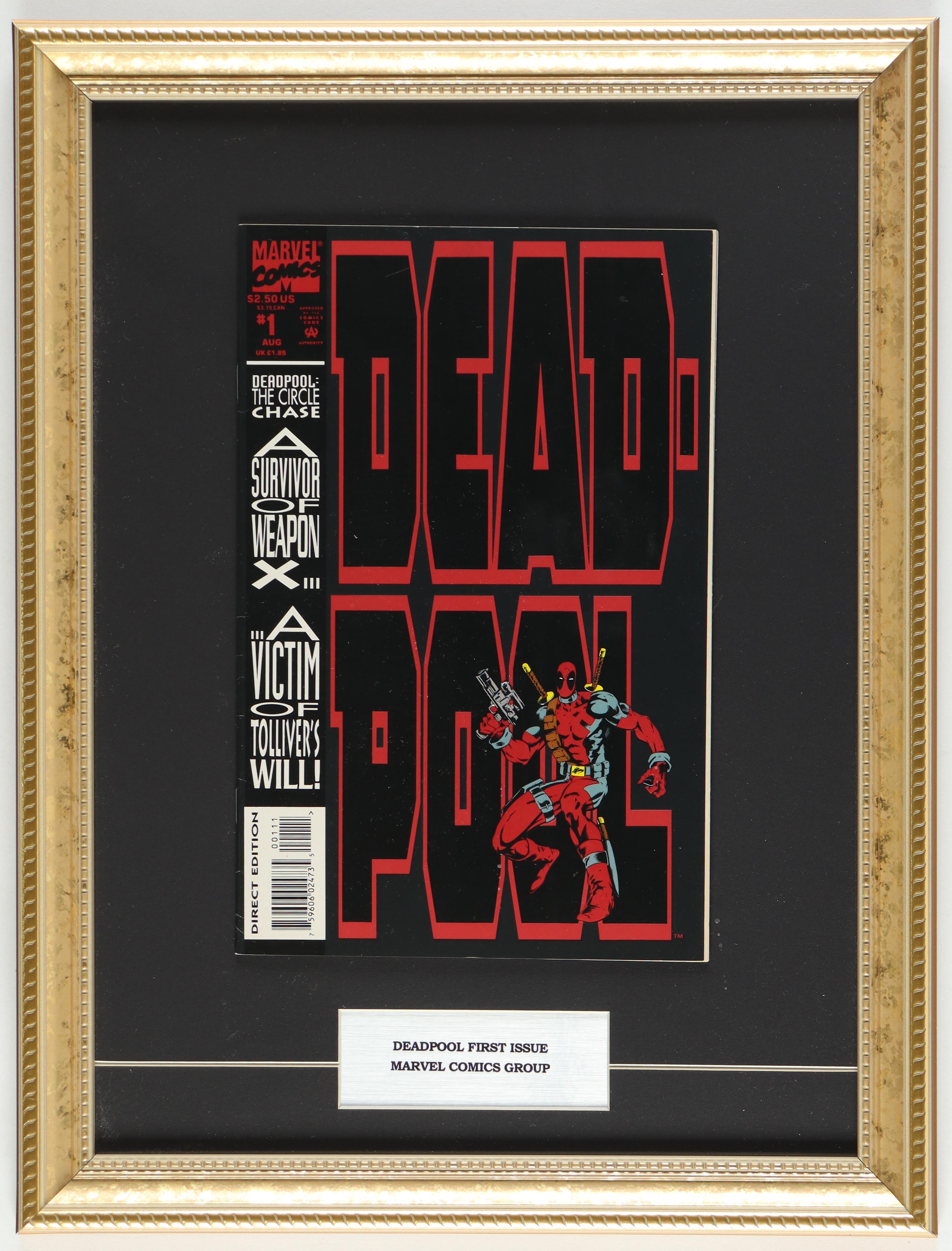 Custom framed display measures 13" x 16" in size and features a vintage 1993 "Deadpool" Issue #1 Marvel first issue comic book.