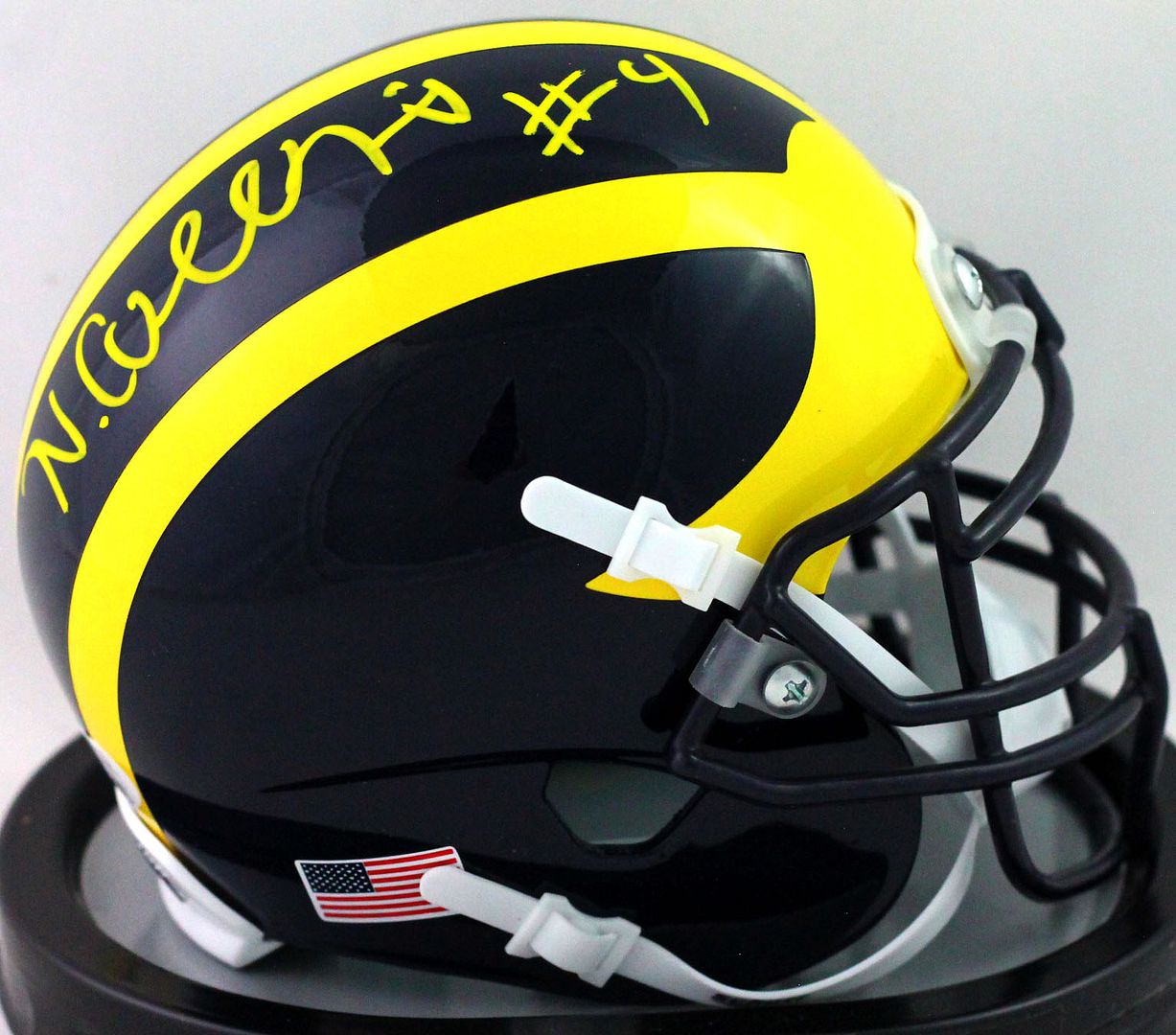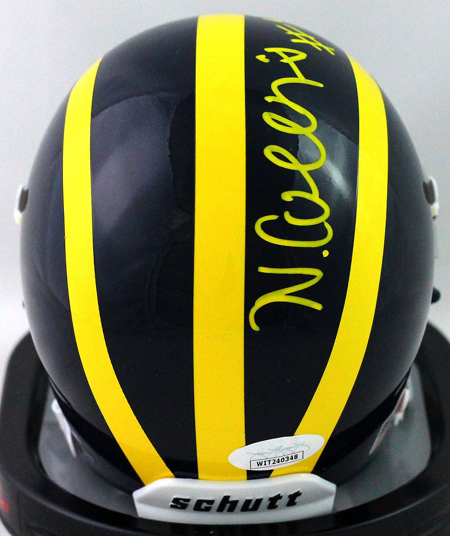 Schutt Michigan Wolverines Mini Helmet has been hand-signed by Nico Collins.