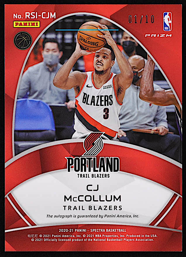 CJ McCollum 2020-21 Panini Spectra Radiant Signatures Asia #12 #01/10