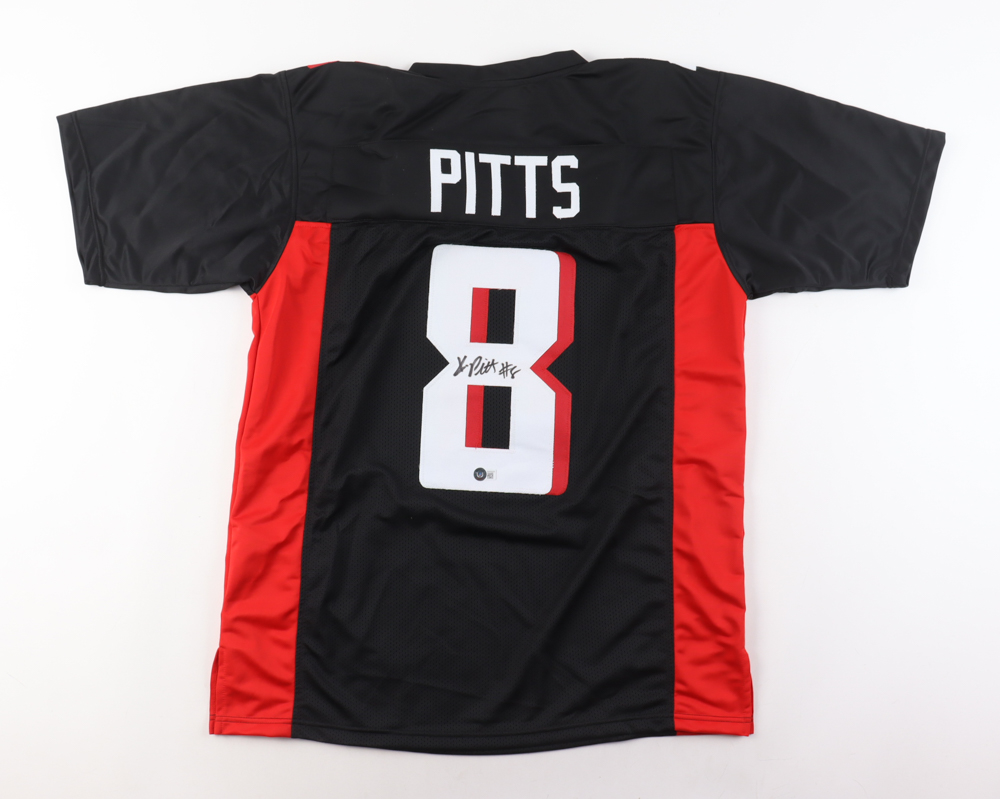 Custom jersey with everything sewn on, size XL. Hand-signed by Kyle Pitts.