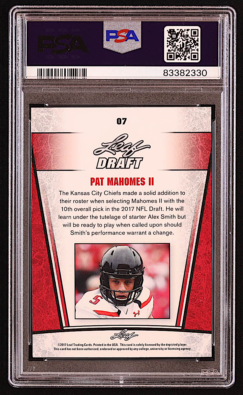 Patrick Mahomes II 2017 Leaf Special Release Draft Silver #07 RC (PSA 8)