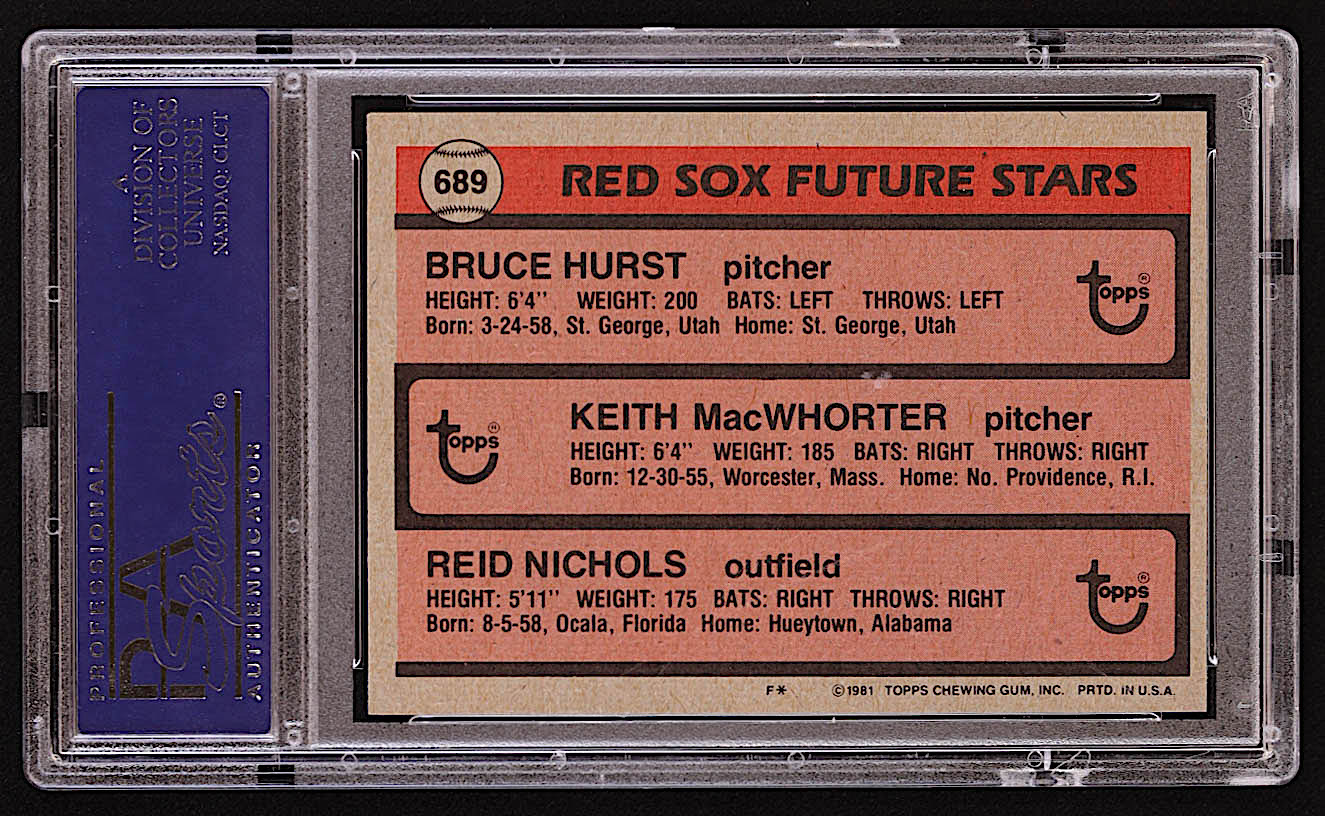 Bruce Hurst / Keith MacWhorter / Reid Nichols 1981 Topps #689 RC (PSA 9)