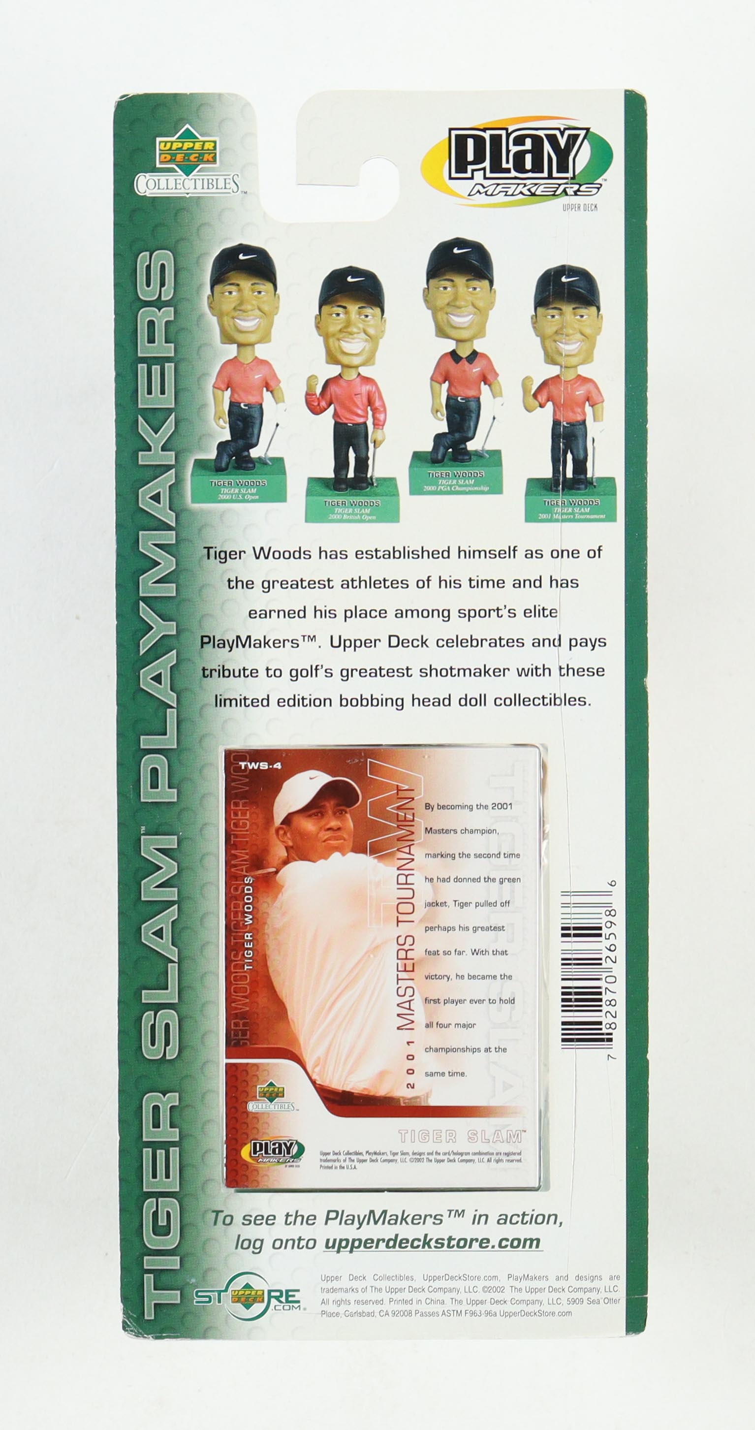 2002 Upper Deck Nike Collector Series Tiger Woods Bobble Head measures approximately 8" in height and comes in the original packaging as shown as well as a Special Edition Upper Deck Card