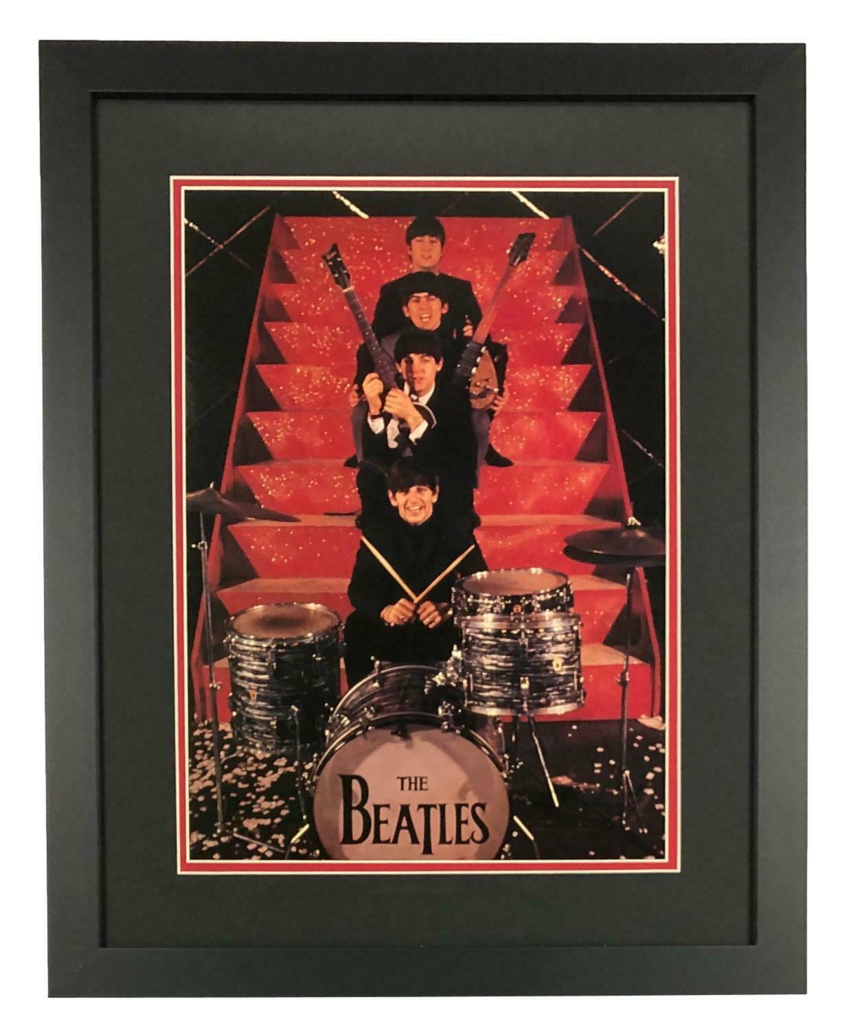 Frame measures approximately 18" x 22" and features an 11" x 17" photo of The 1962 Beatles with Ringo Starr, Paul McCartney, John Lennon (D. 1980) and George Harrison (D. 2001). Please note that the item is unsigned.