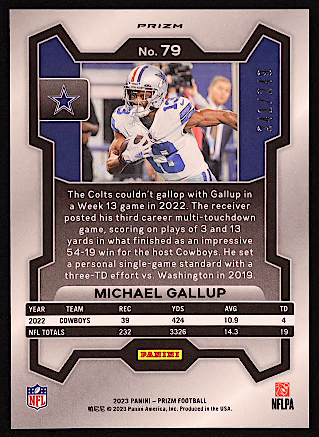 Michael Gallup 2023 Panini Prizm Prizms Orange #79 #241/249