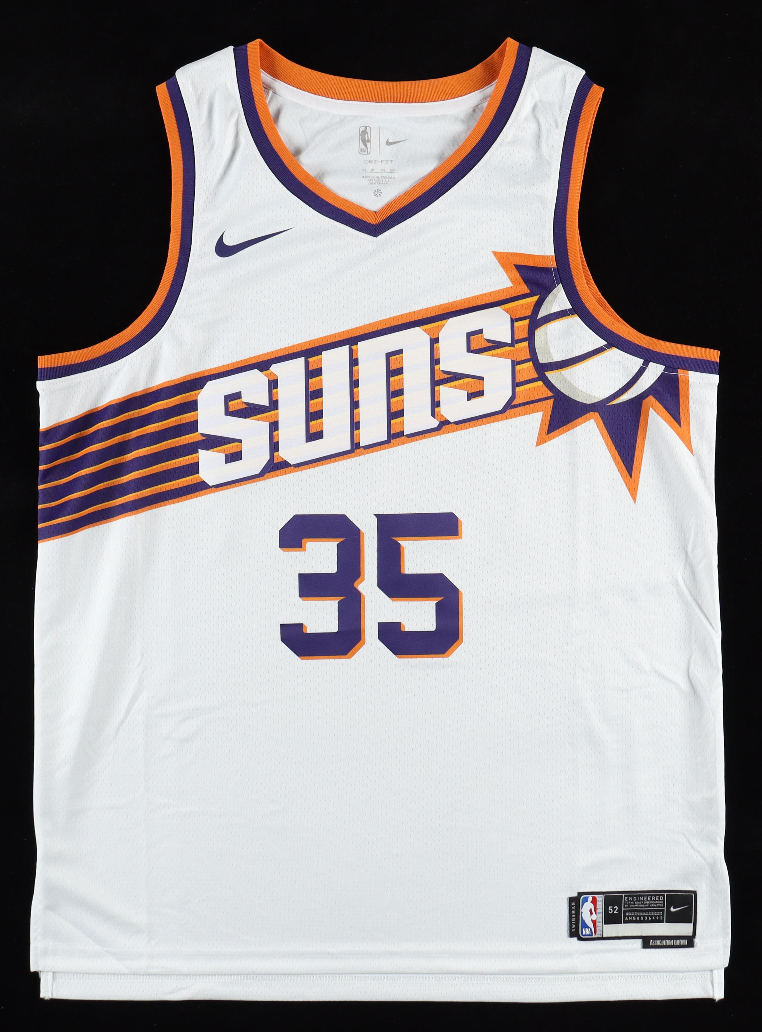 Jordan jersey. Everything is pressed on, size 48. Hand-signed by Kevin Durant (Phoenix Suns).