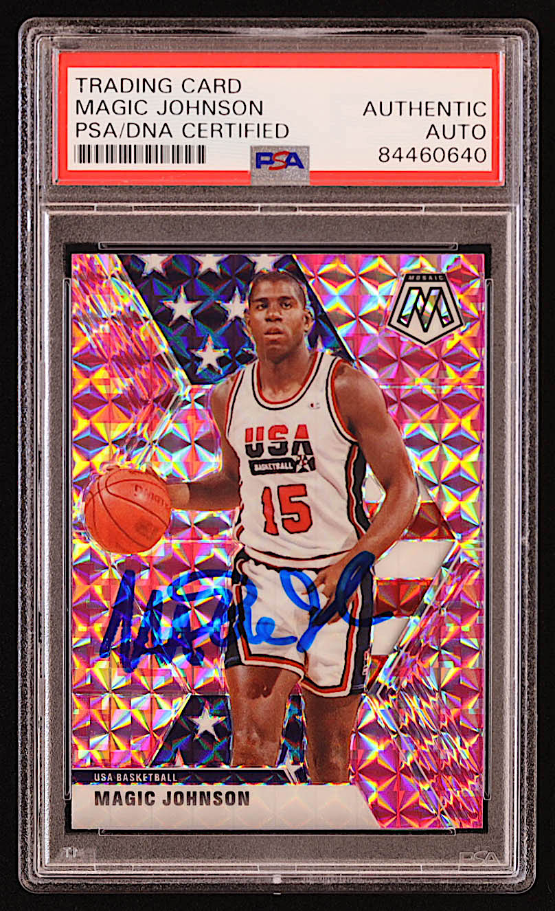 Magic Johnson Signed 2019-20 Panini Mosaic Mosaic Pink Camo #255 (PSA)