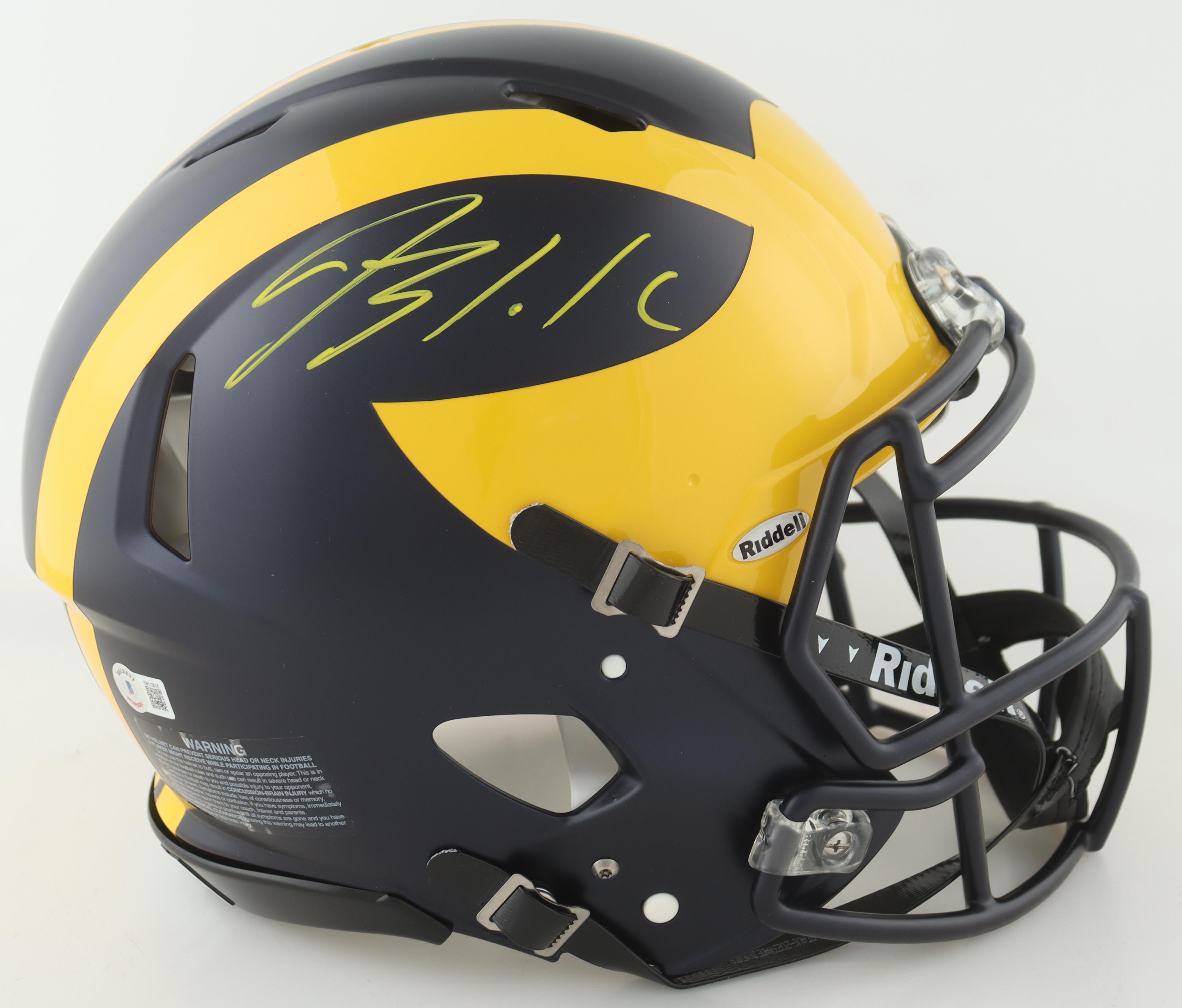 Riddell Michigan Wolverines full-size authentic on-field Speed helmet. Hand-signed by Blake Corum.