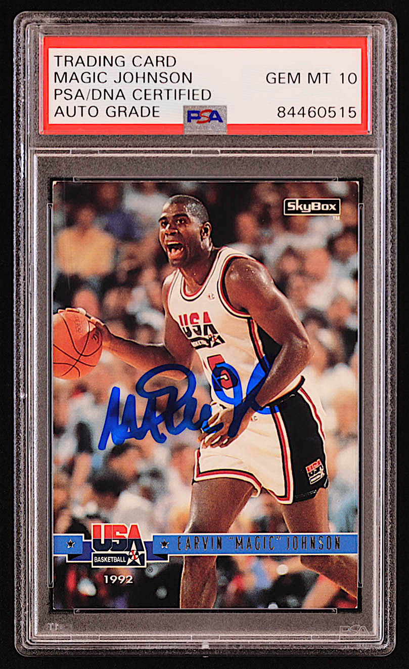 Magic Johnson Signed 1994 SkyBox USA #87 / Passing the Torch (PSA | Autograph Graded PSA 10)