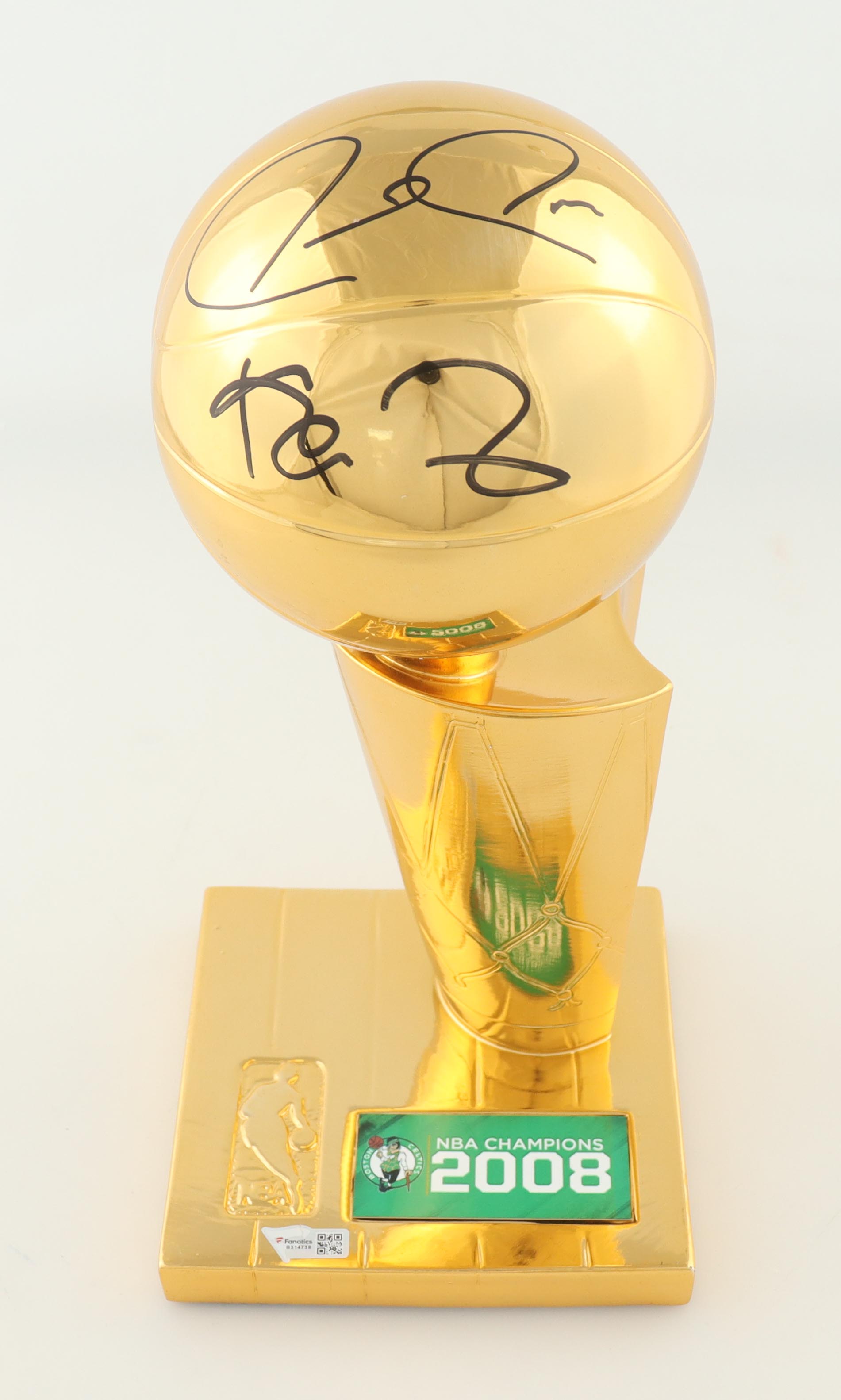 Replica championship trophy, approximately 11" in height. Hand-signed by Kevin Garnett (Boston Celtics, HOF) and Paul Pierce (Boston Celtics, HOF).