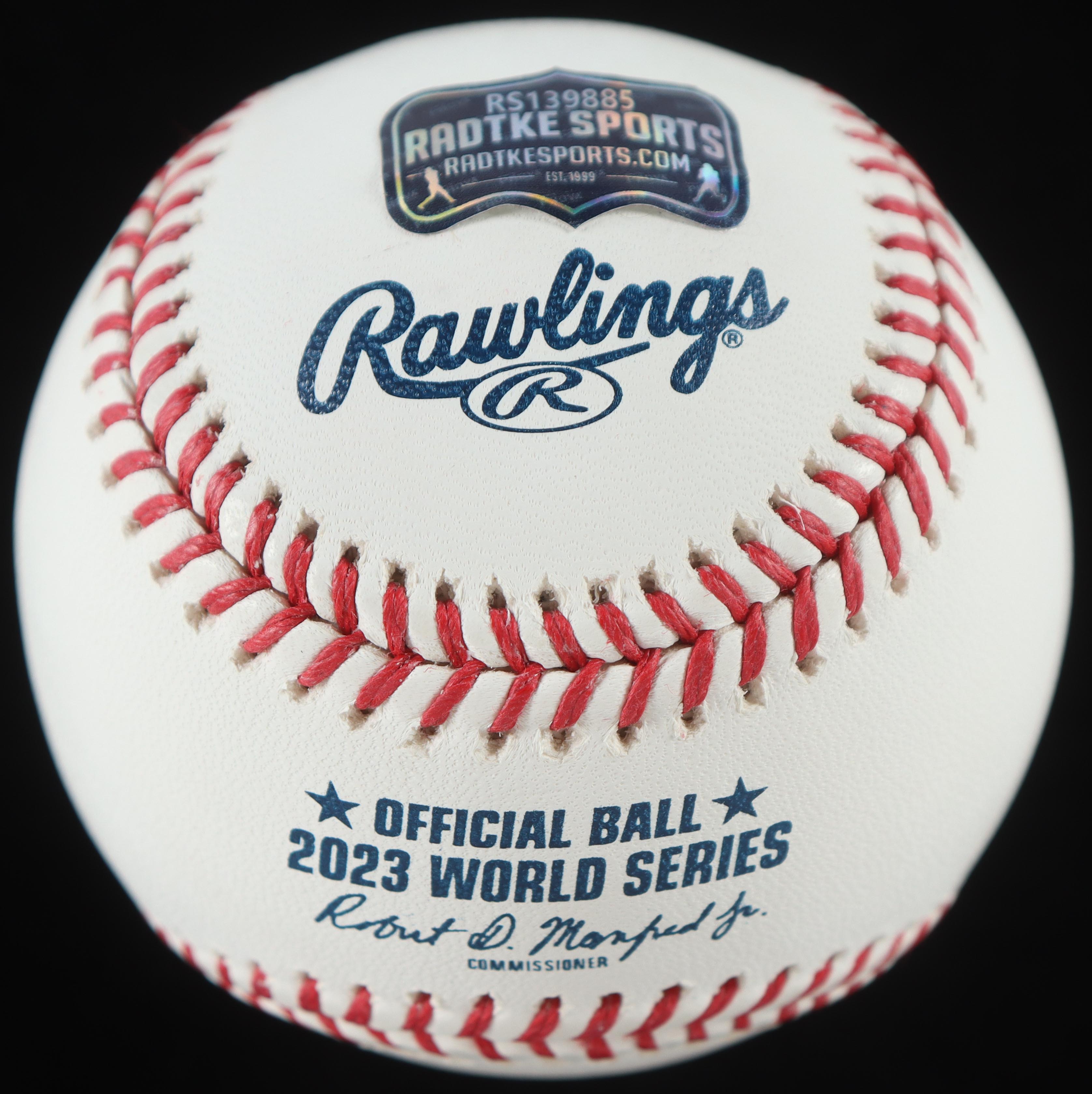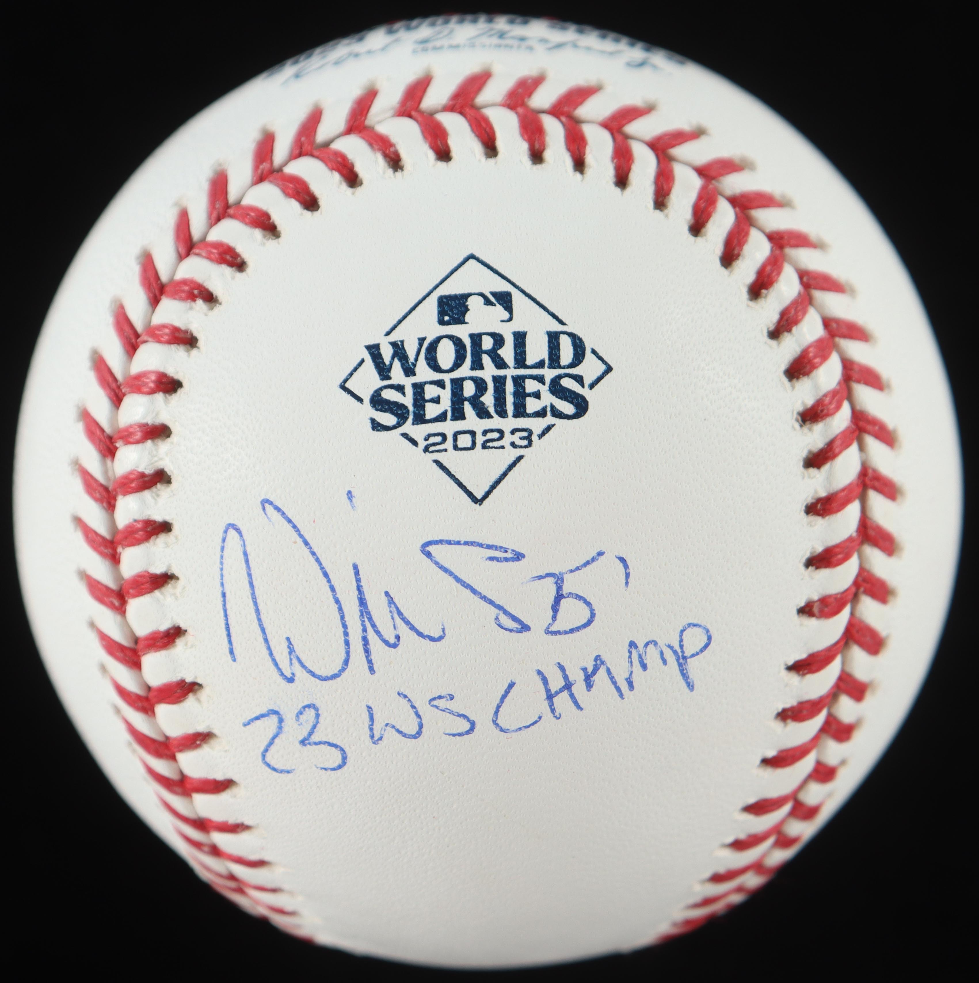 Rawlings Official 2023 World Series Logo baseball. Hand-signed and inscribed by Will Smith (Houston Astros).