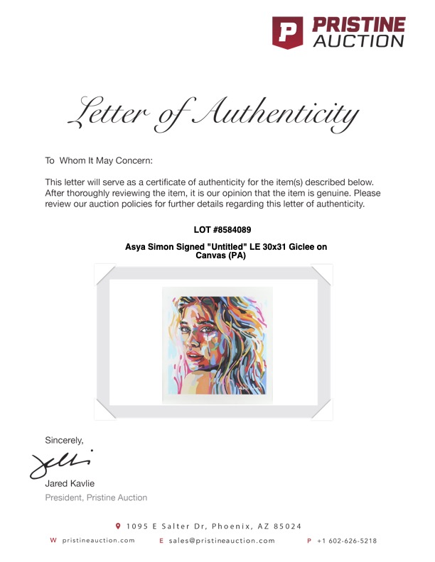 This is a untitled limited edition giclee on canvas by Asya Simon. The piece is hand signed by the artist and accompanied by a letter of authenticity. Measures approximately 30" x 31".