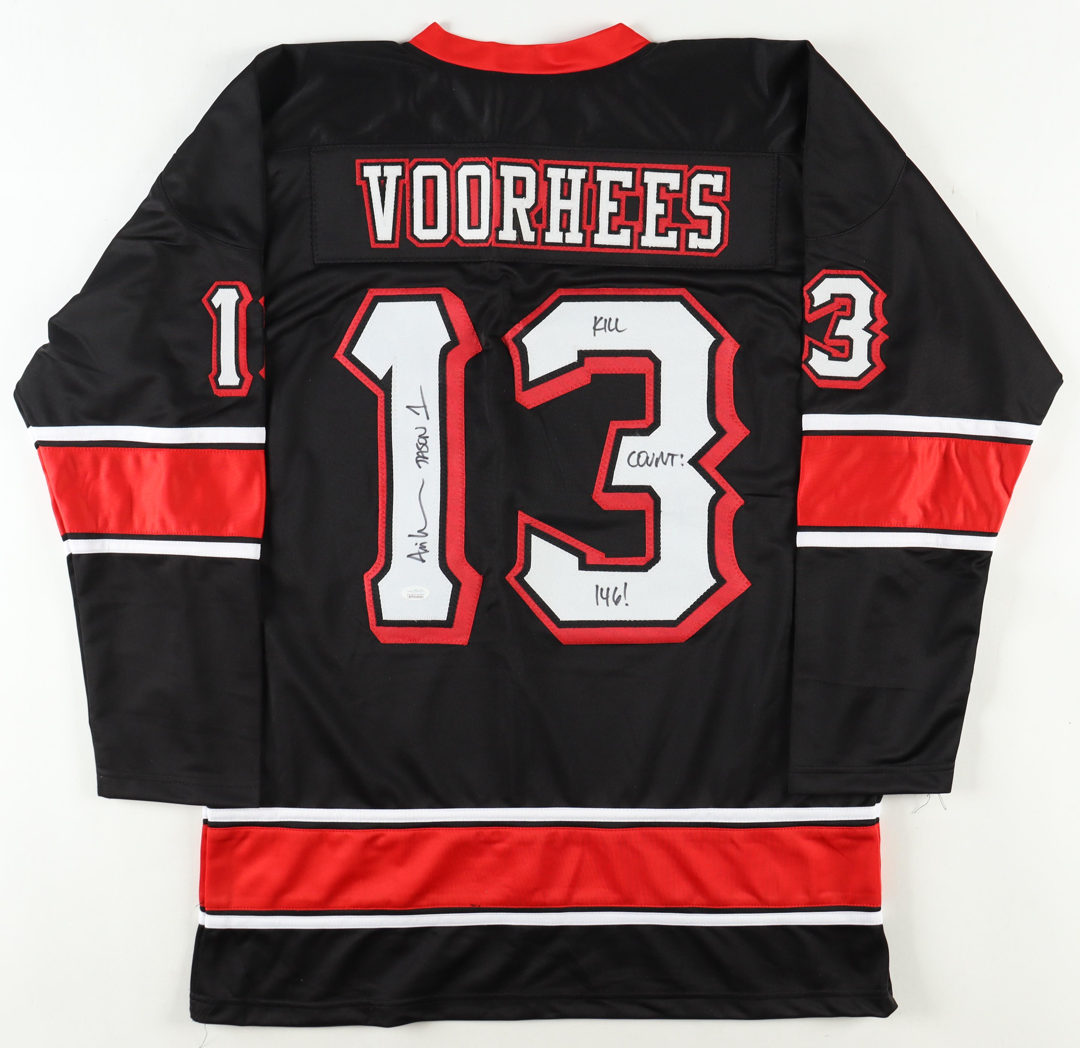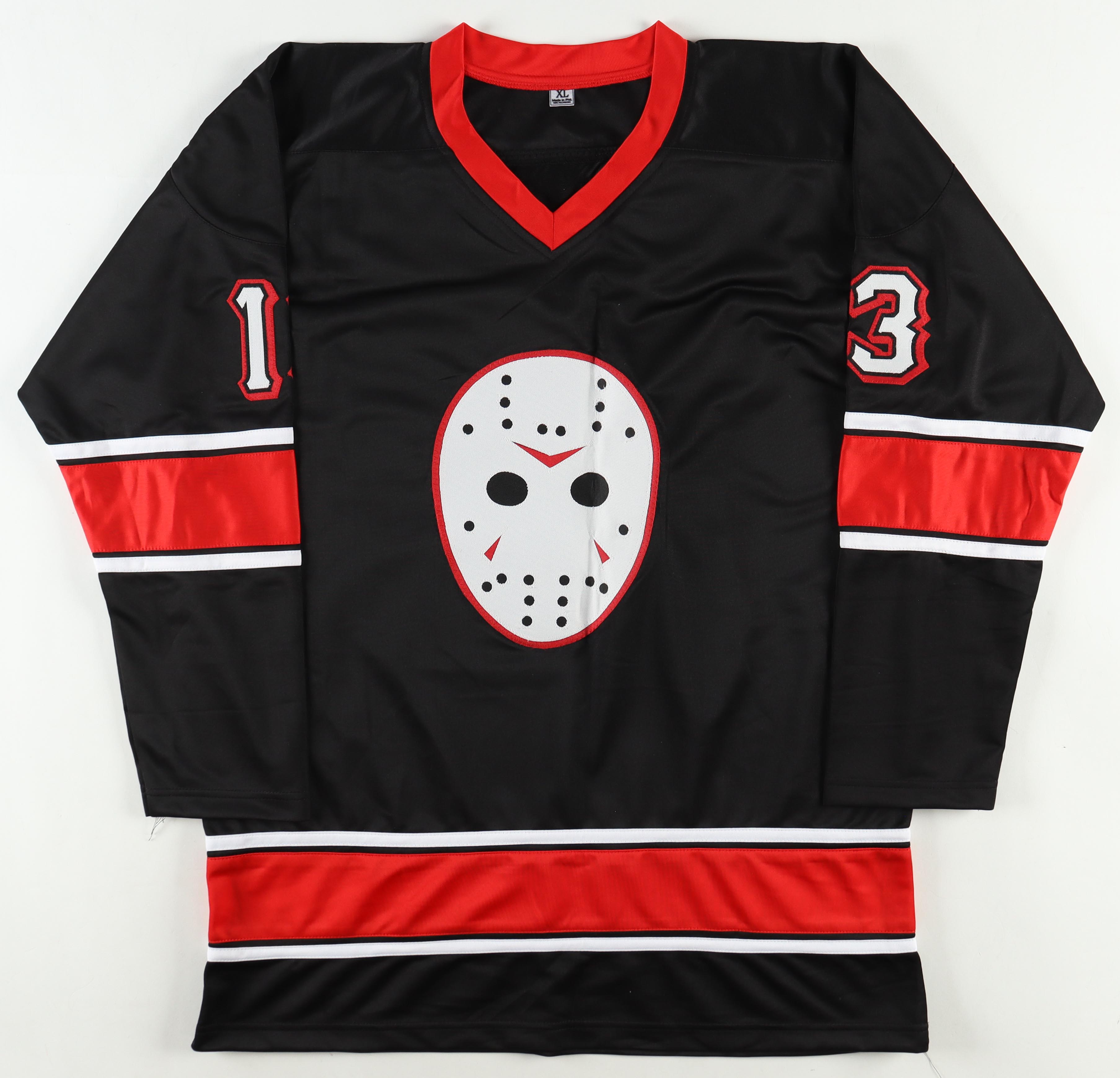 Custom jersey with everything sewn on, size XL. Hand-signed and inscribed by Ari Lehman (Jason Voorhees).