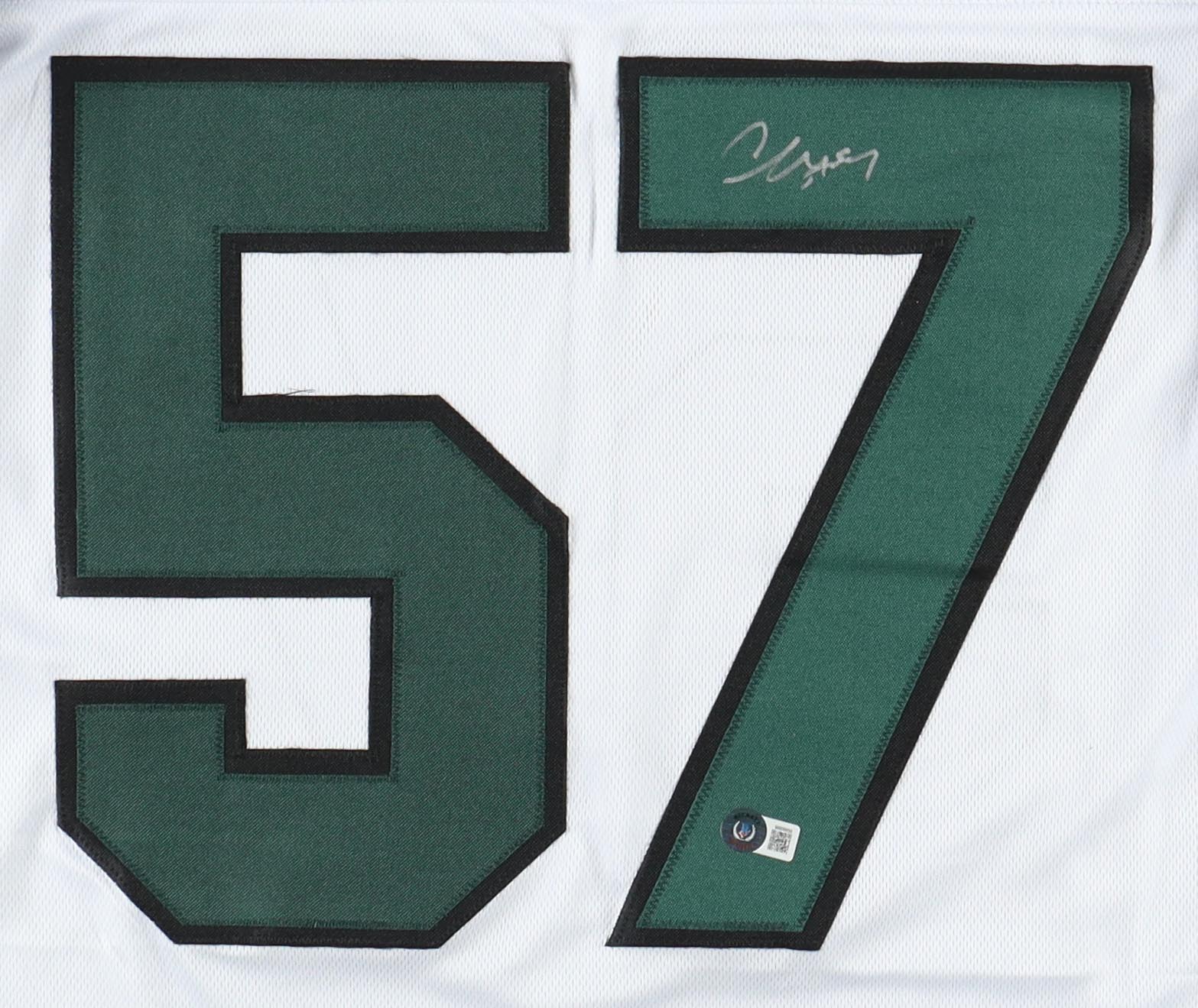 Custom jersey with everything sewn on, size XL. Hand-signed by C. J. Mosley.