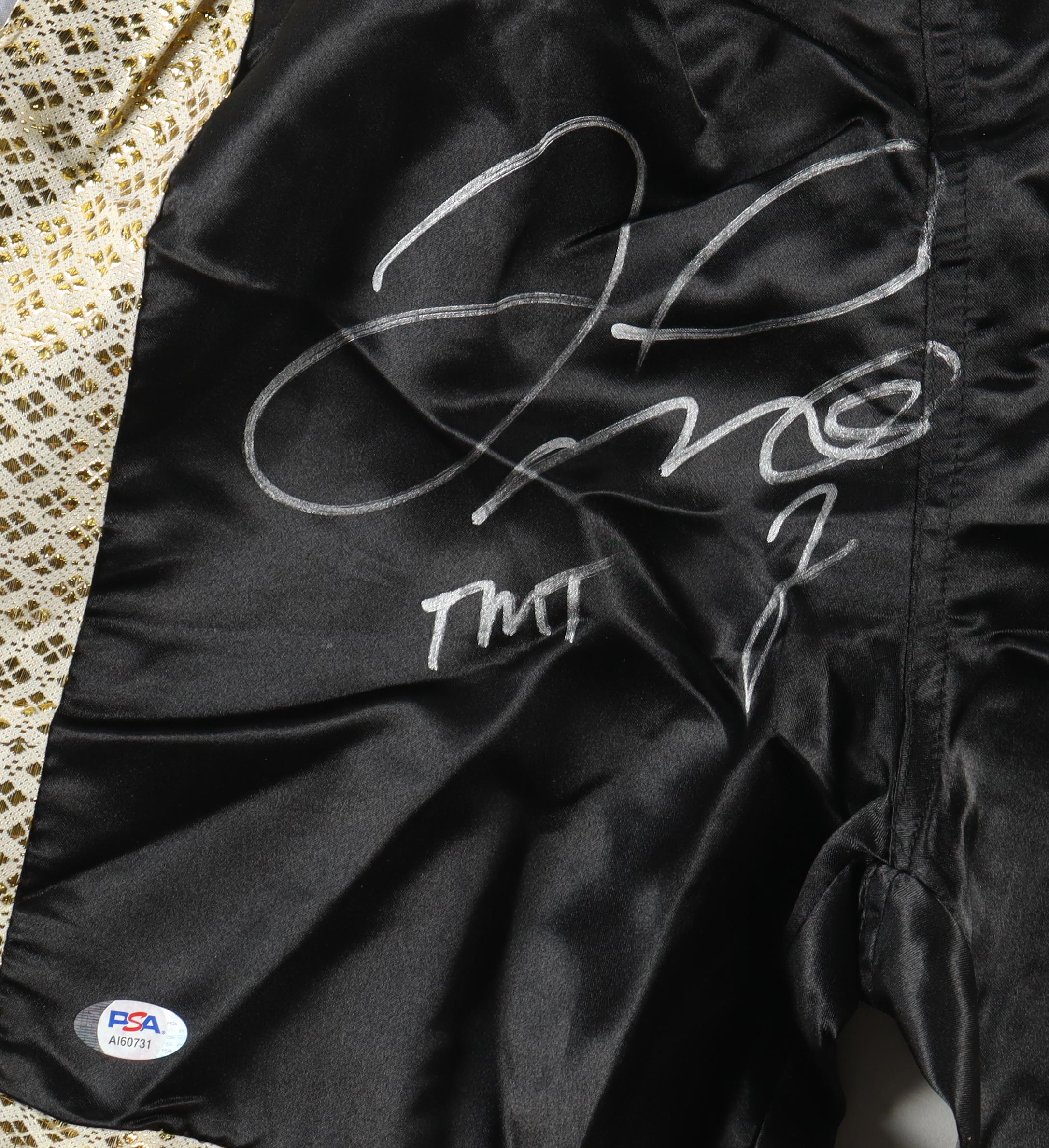 Floyd Mayweather Jr. Signed Boxing Trunks Inscribed "TMT" (PSA)