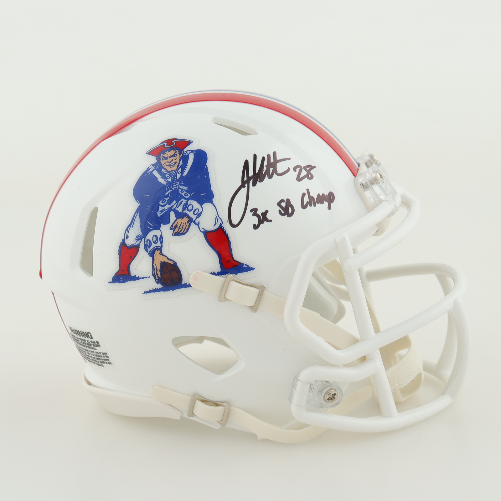 Riddell New England Patriots Speed mini helmet. Hand-signed by James White.
