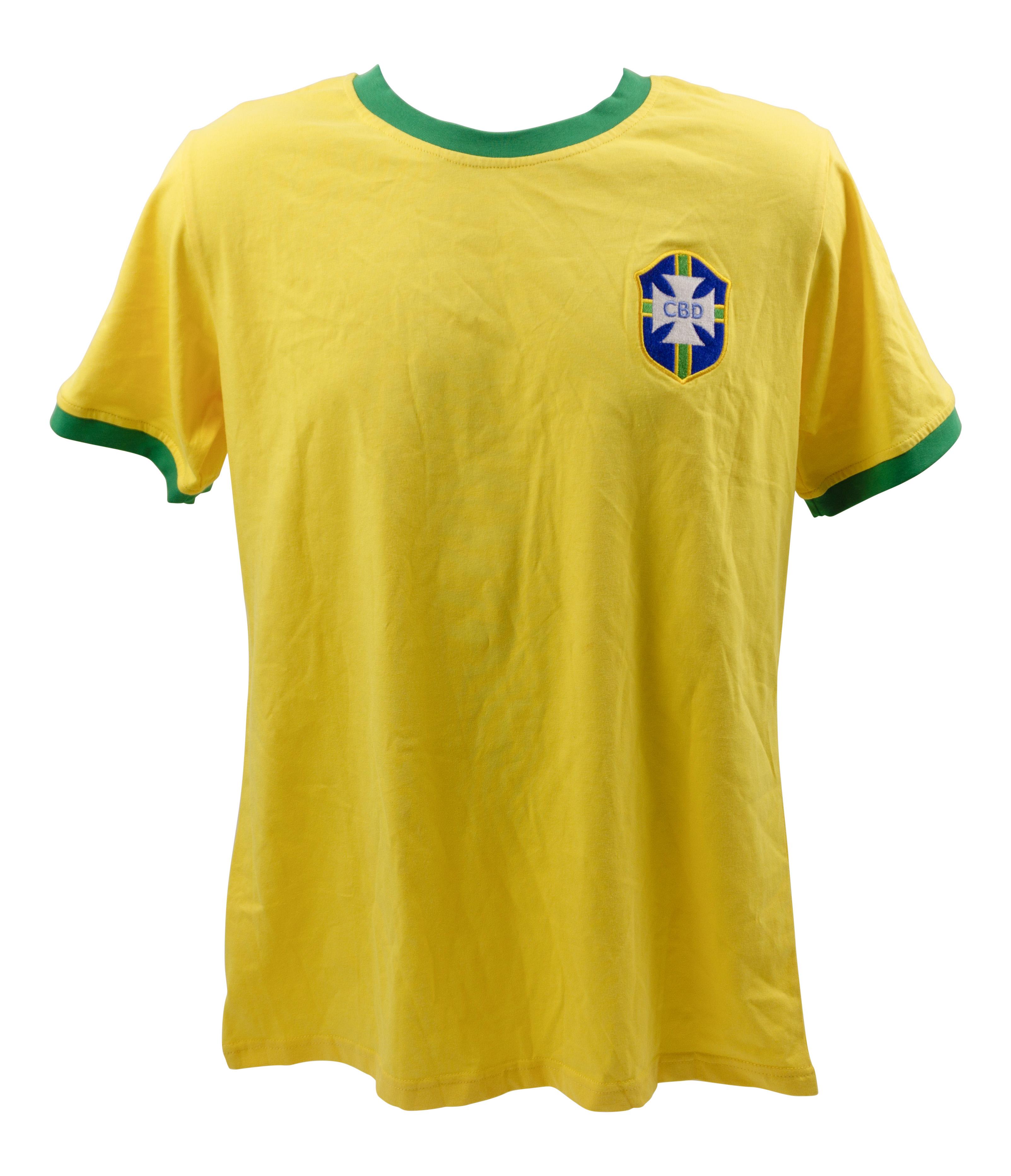 Jersey with everything pressed on, size L. Hand-signed by Pele, Ronaldo Nazario and Kaka.