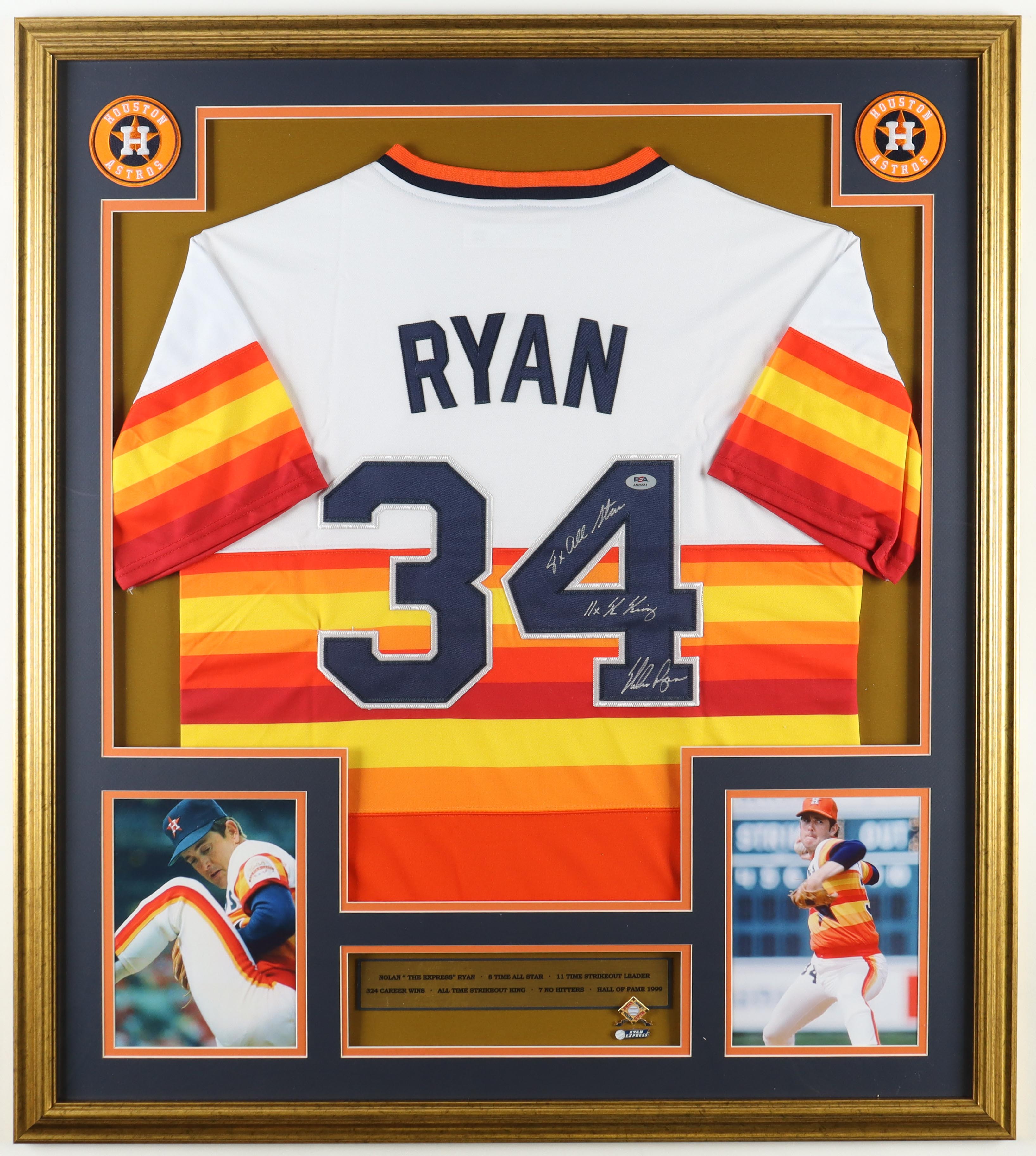 Nolan Ryan Signed Astros Custom Framed Jersey Display Inscribed "8x All Star" & "11x K King" (PSA)