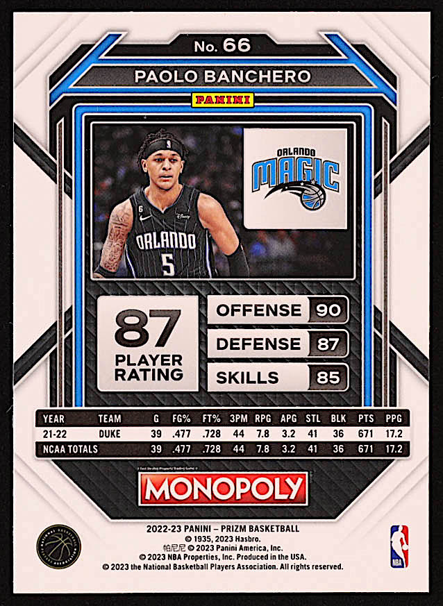 Paolo Banchero 2022-23 Panini Prizm Monopoly #66 RC