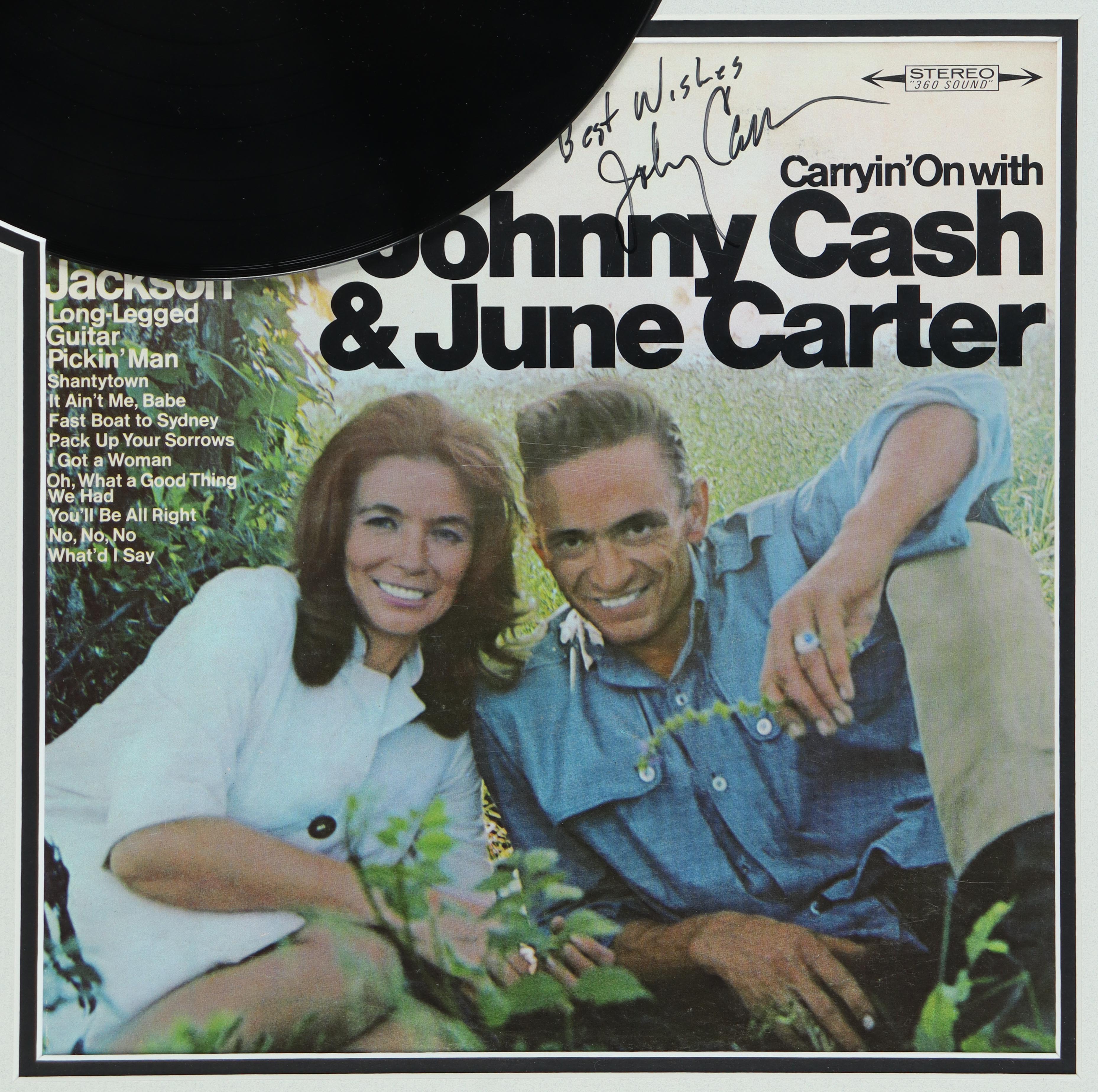 Johnny Cash & June Carter Signed "Carryin' On with Johnny Cash & June Carter" Custom Framed Vinyl Album Cover Display Inscribed "My Love" & "Best Wishes" (JSA)